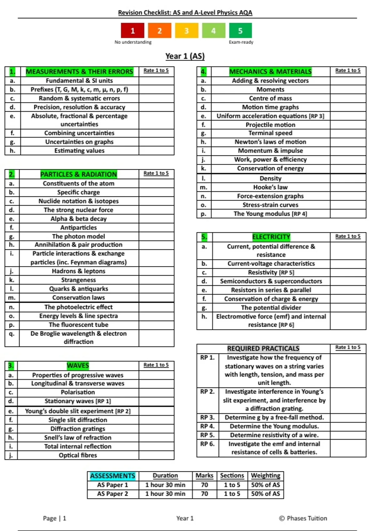 Revision Checklist: AS and A-Level Physics AQA