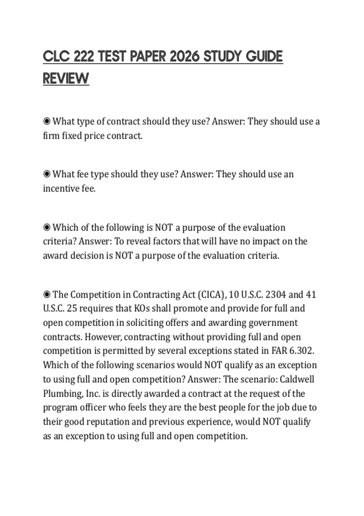 to using full and open competition? Answer: The scenario: Caldwell