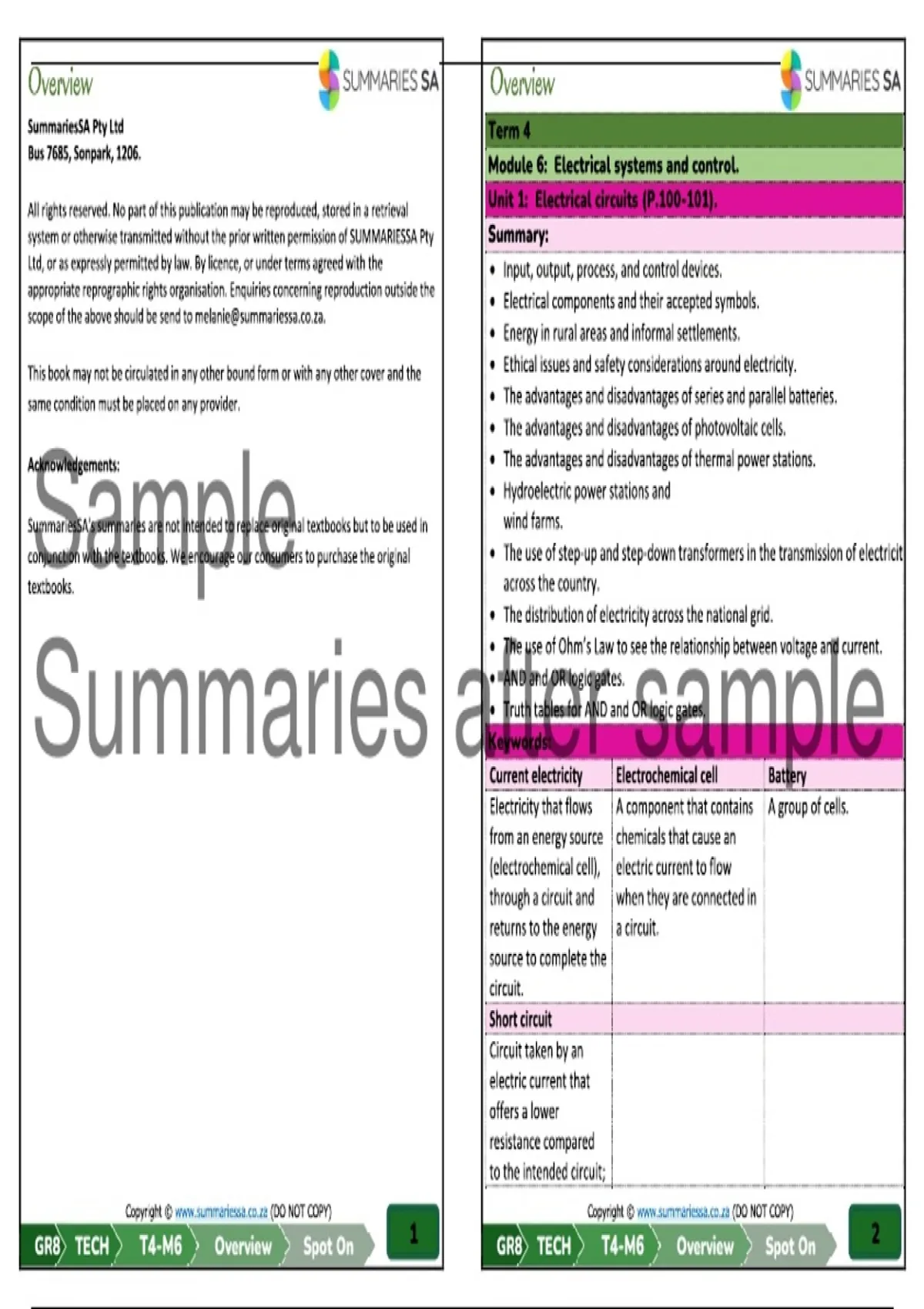 GR8 TECH T4-M6 Mind Map Spot On Copyright © www.summariessa.co.za (DO NOT COPY)