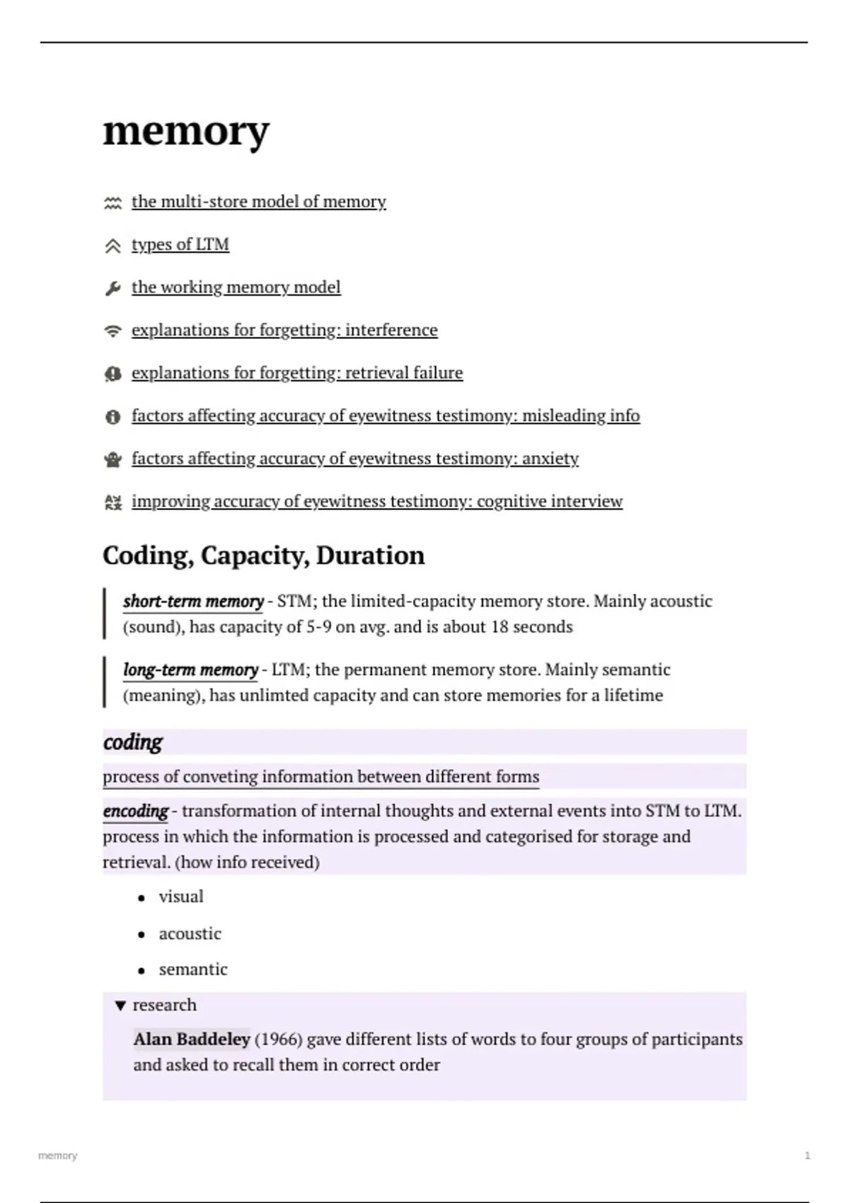 but the idea that STM uses mostly acoustic coding and LTM semantic has