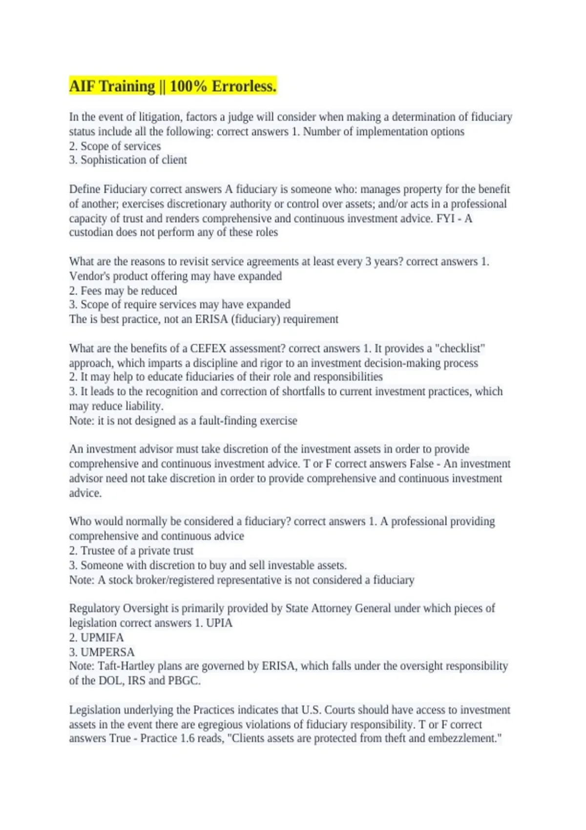 or F correct answers F - Ignorance is not a viable defense.
