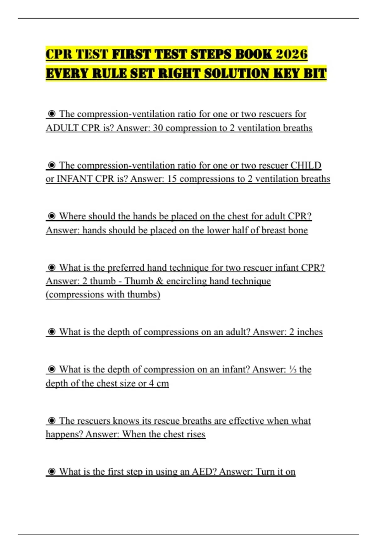 CPR TEST FIRST TEST STEPS BOOK 2026 EVERY RULE SET RIGHT SOLUTION KEY BIT