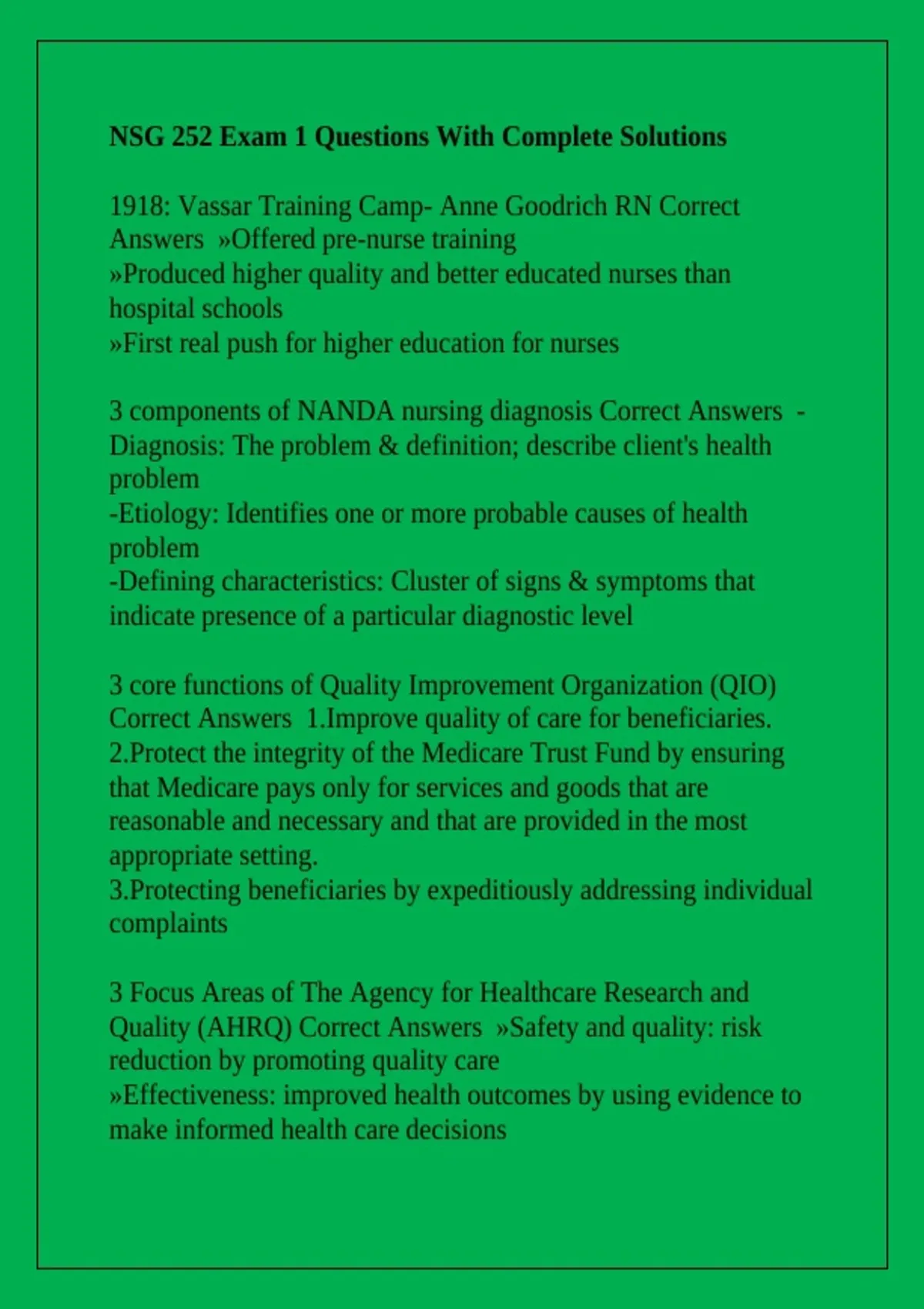 NSG 252 Exam 1 Questions With Complete Solutions