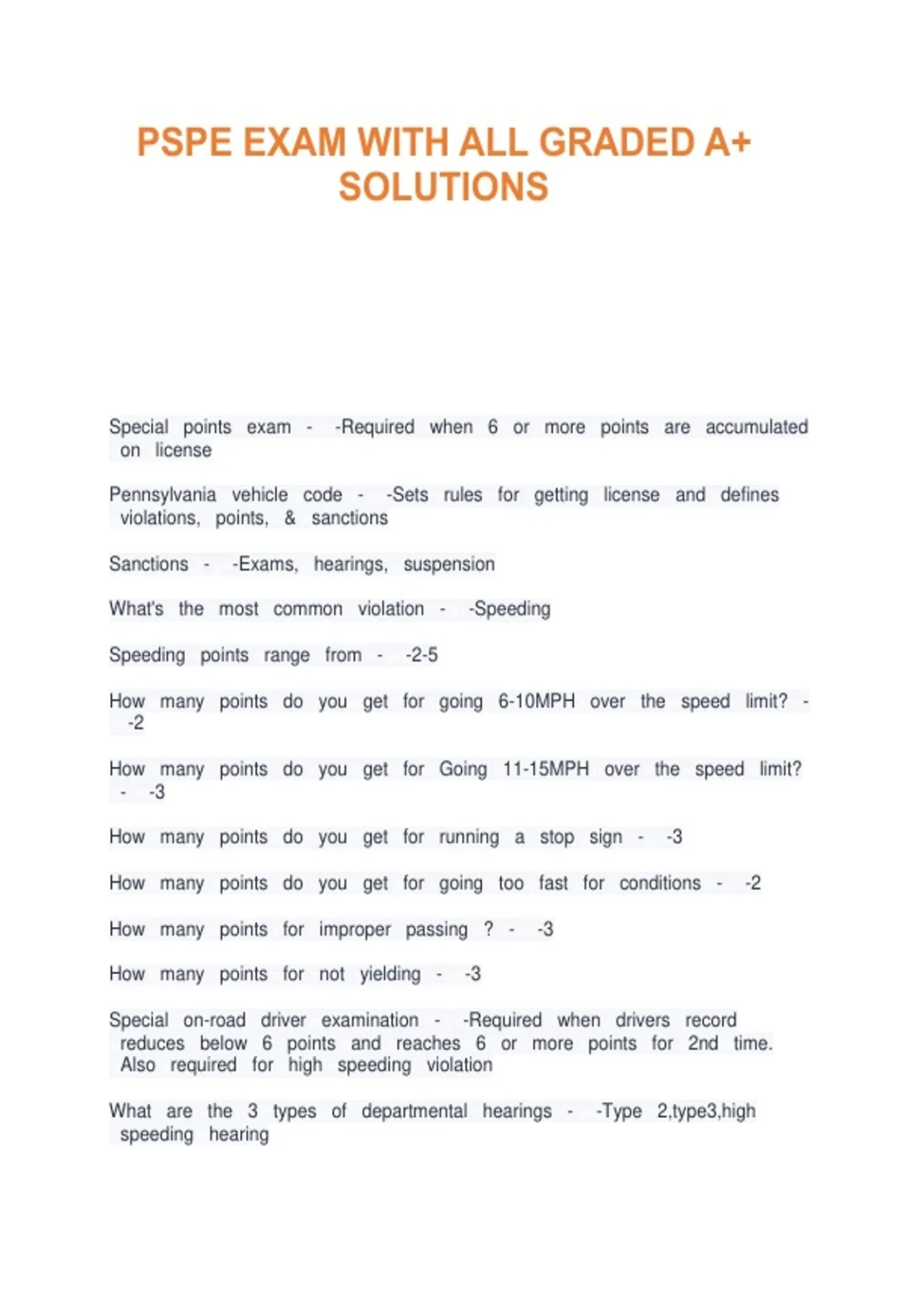 PSPE EXAM WITH ALL GRADED A+