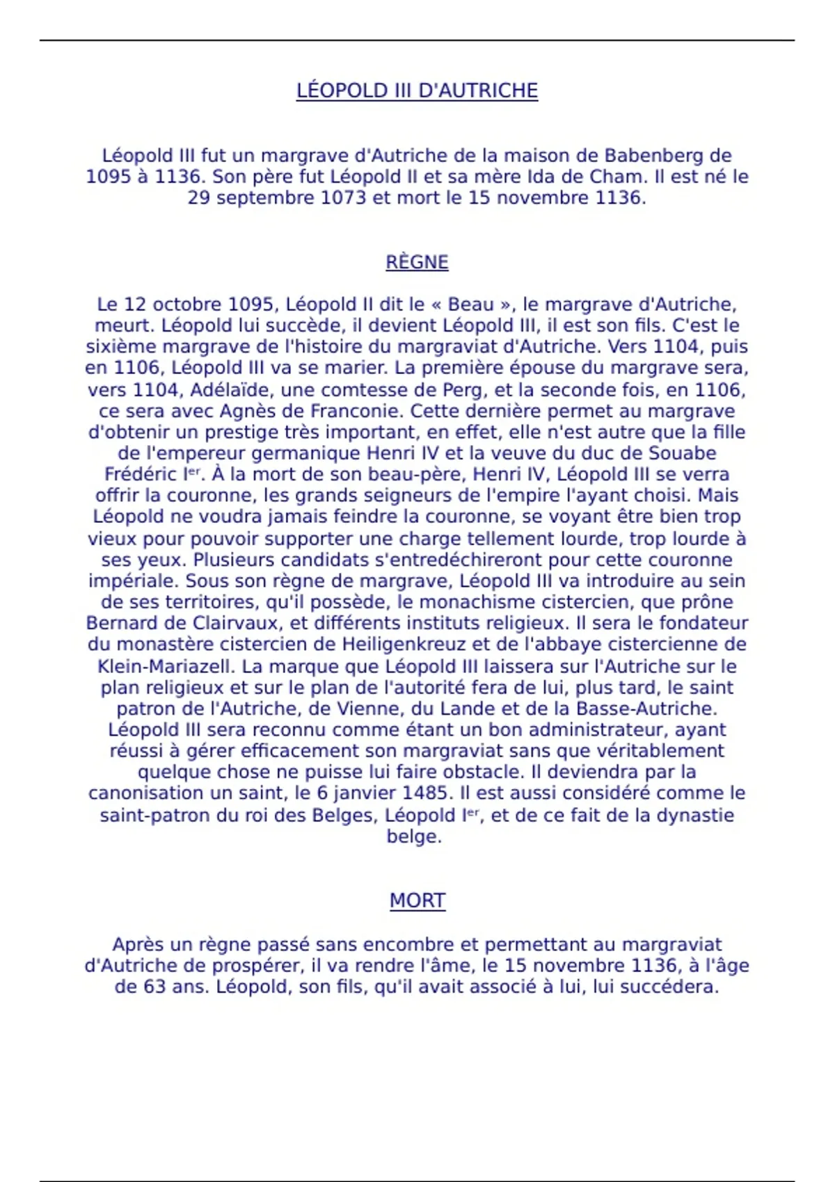 1095 à 1136. Son père fut Léopold II et sa mère Ida de Cham. Il est né le