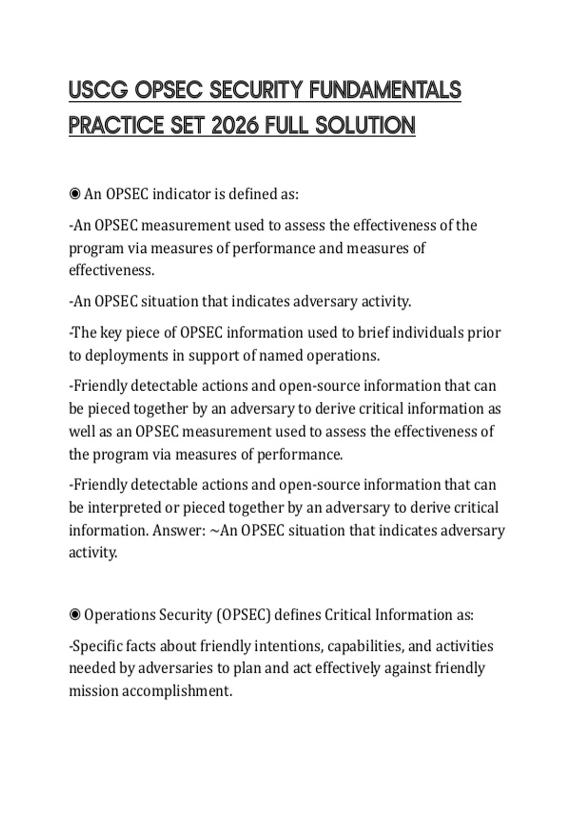 ◉ Operations Security (OPSEC) defines Critical Information as: