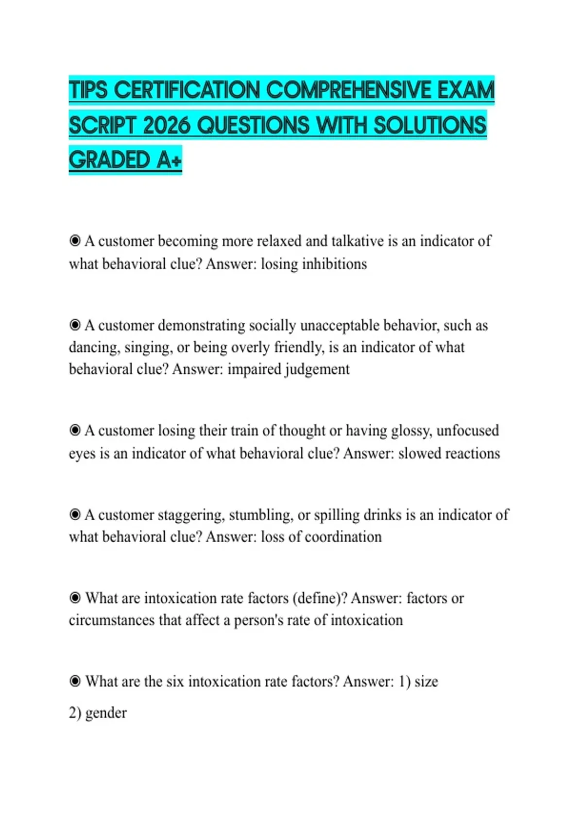 TIPS CERTIFICATION COMPREHENSIVE EXAM SCRIPT 2026 QUESTIONS WITH SOLUTIONS GRADED A+