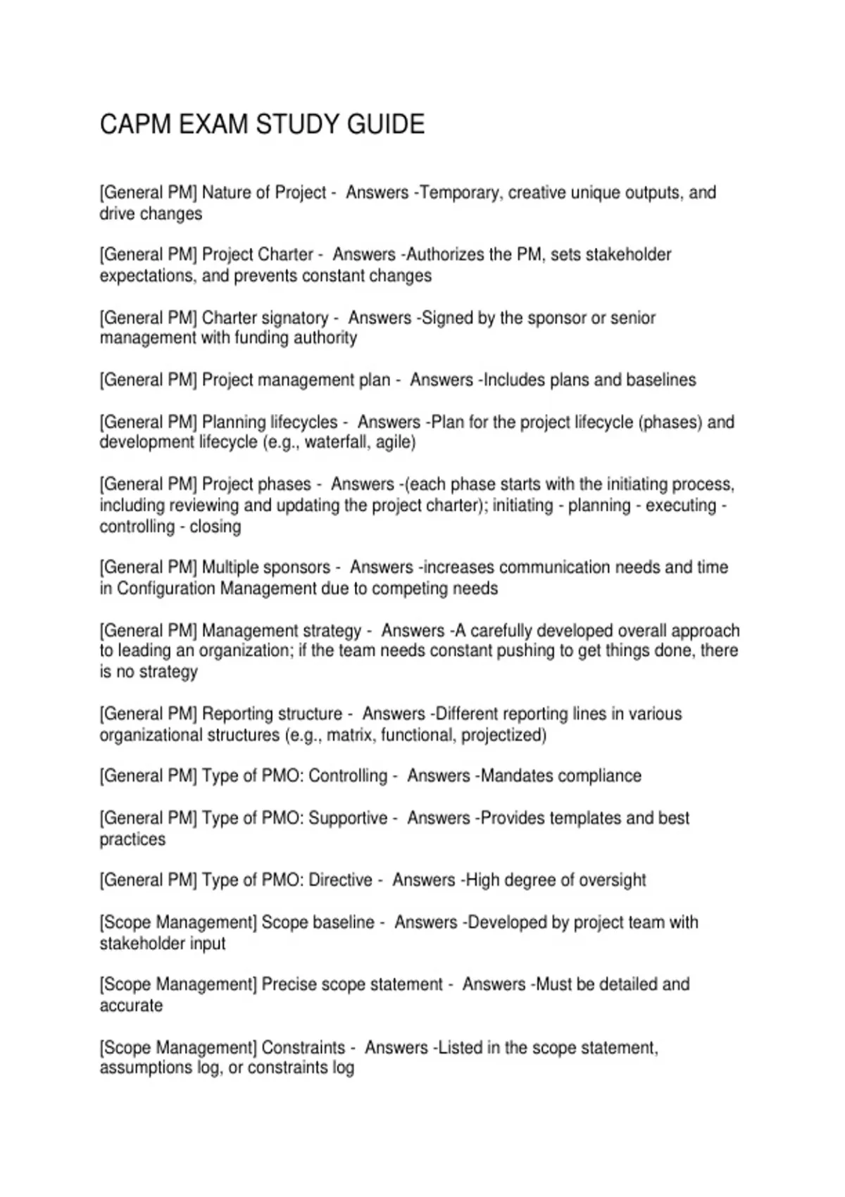 CAPM EXAM STUDY GUIDE
