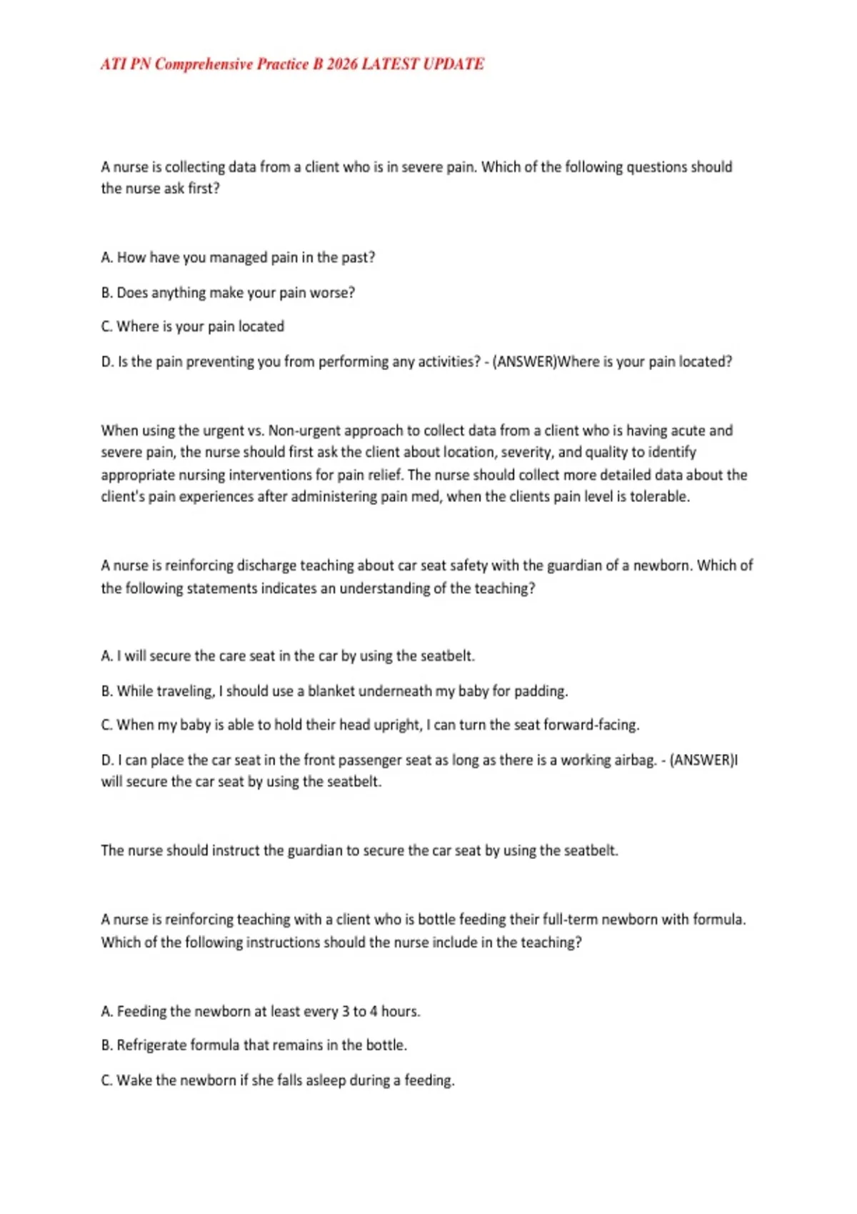 , ATI PN Comprehensive Practice B 2026 LATEST UPDATE