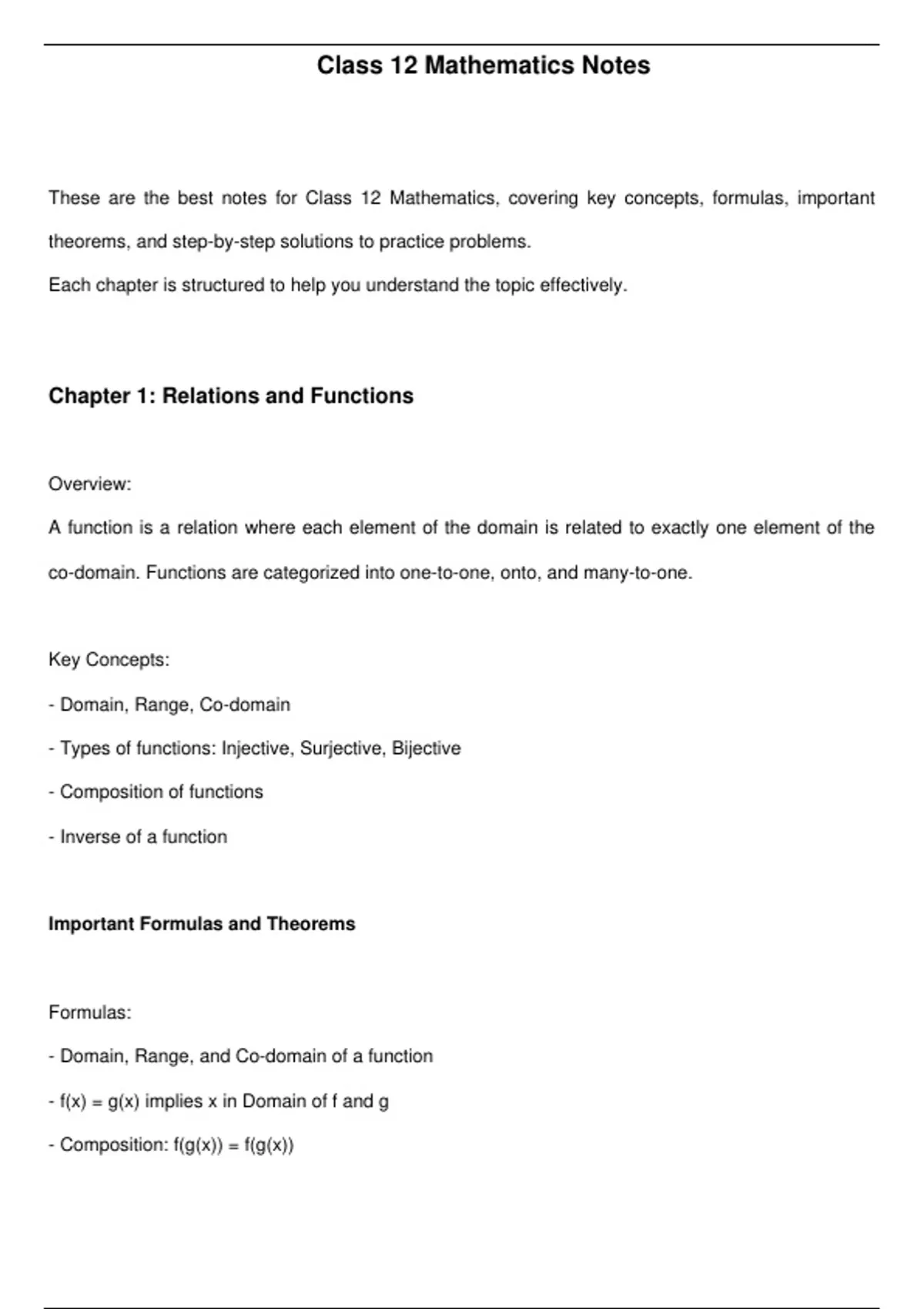 These are the best notes for Class 12 Mathematics, covering key concepts, formulas, important