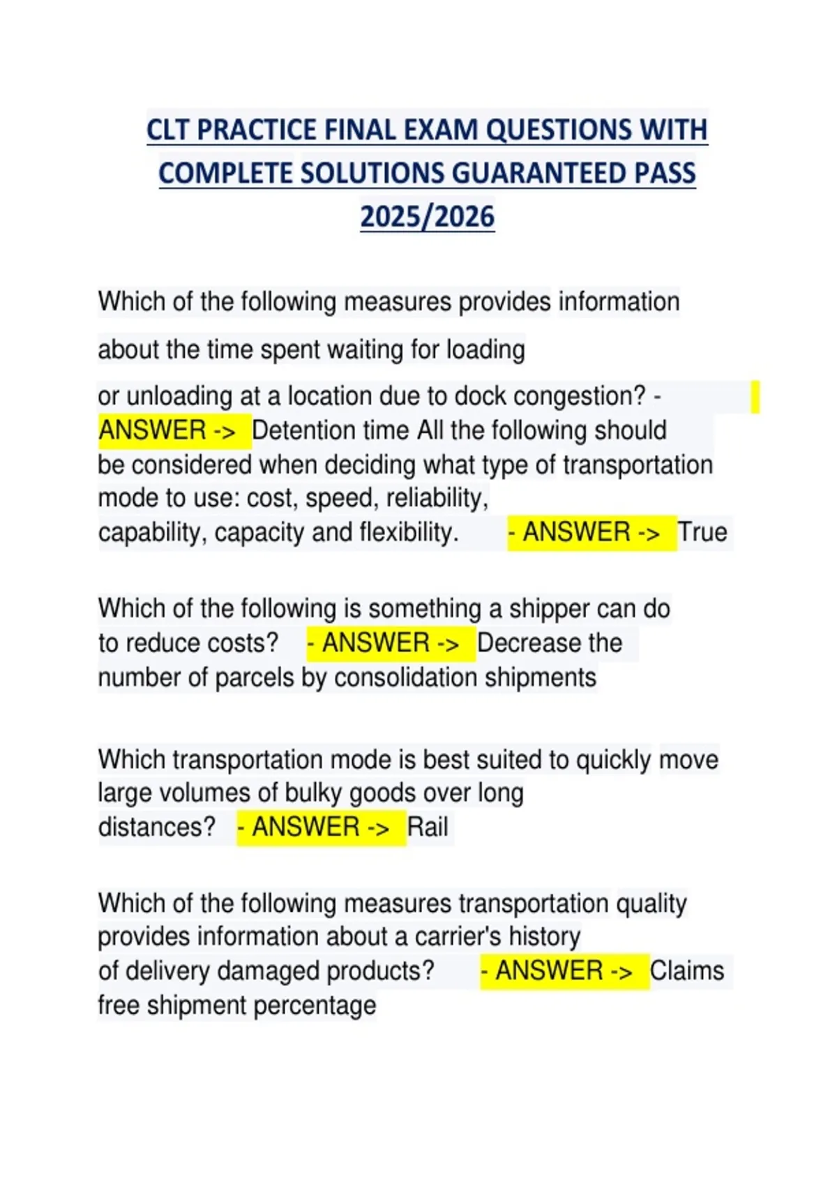 COMPLETE SOLUTIONS GUARANTEED PASS