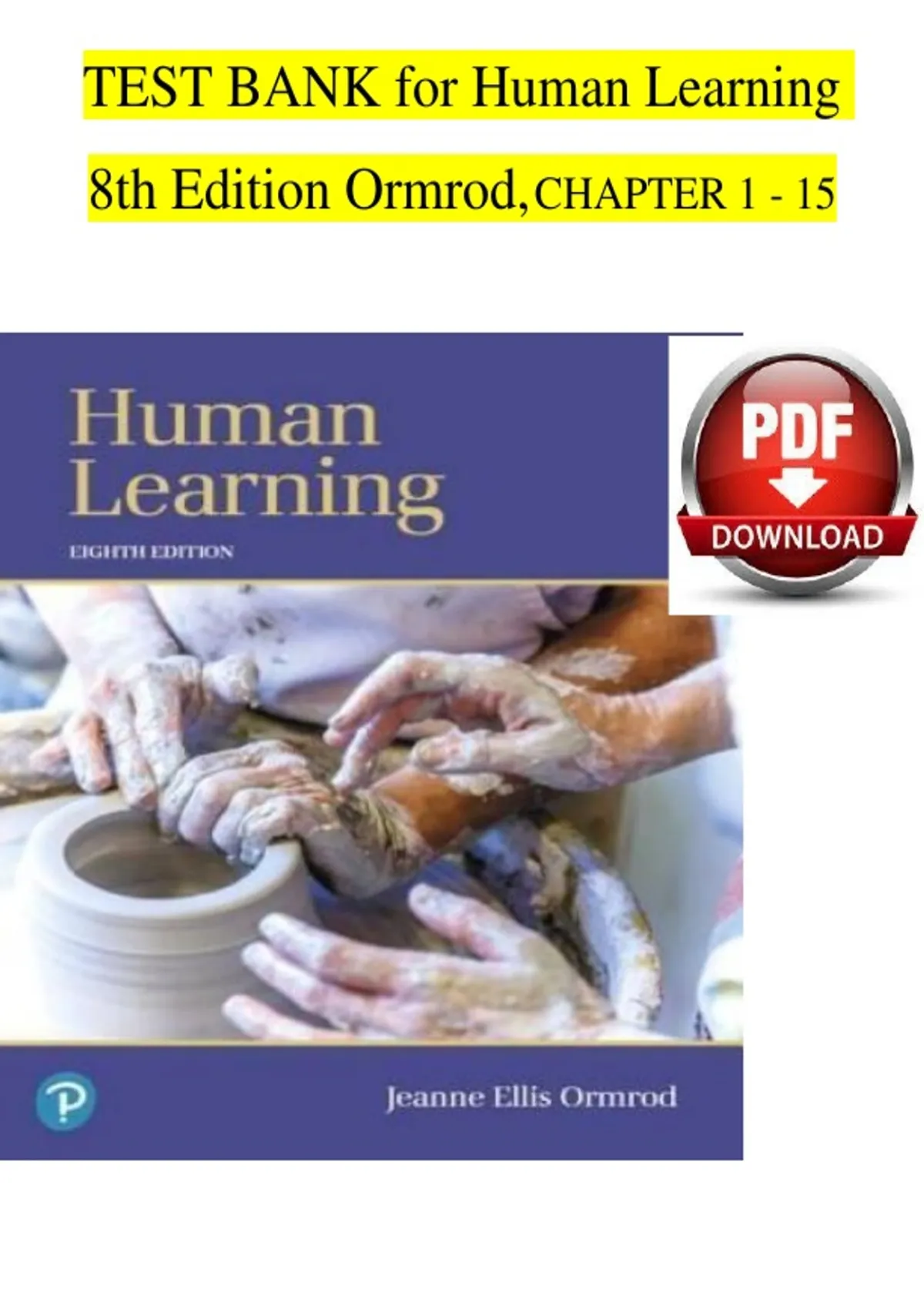 Master the principles of human learning with this complete test bank for Human Learning (8th Edition) by Ormrod. Covering Chapters 1–15, this resource features exam-style questions with accurate answers to help you understand learning theories, cognitive development, behaviorism, constructivism, motivation, memory, instructional strategies, and application of educational psychology in classroom and real-world settings. Ideal for psychology, education, teaching, and allied health students, it allows you to identify weak areas, reinforce high-yield learning concepts, and prepare efficiently for quizzes, midterms, finals, and certification exams. Study smarter, strengthen instructional and learning analysis skills, and gain the competitive edge needed for academic and professional success.