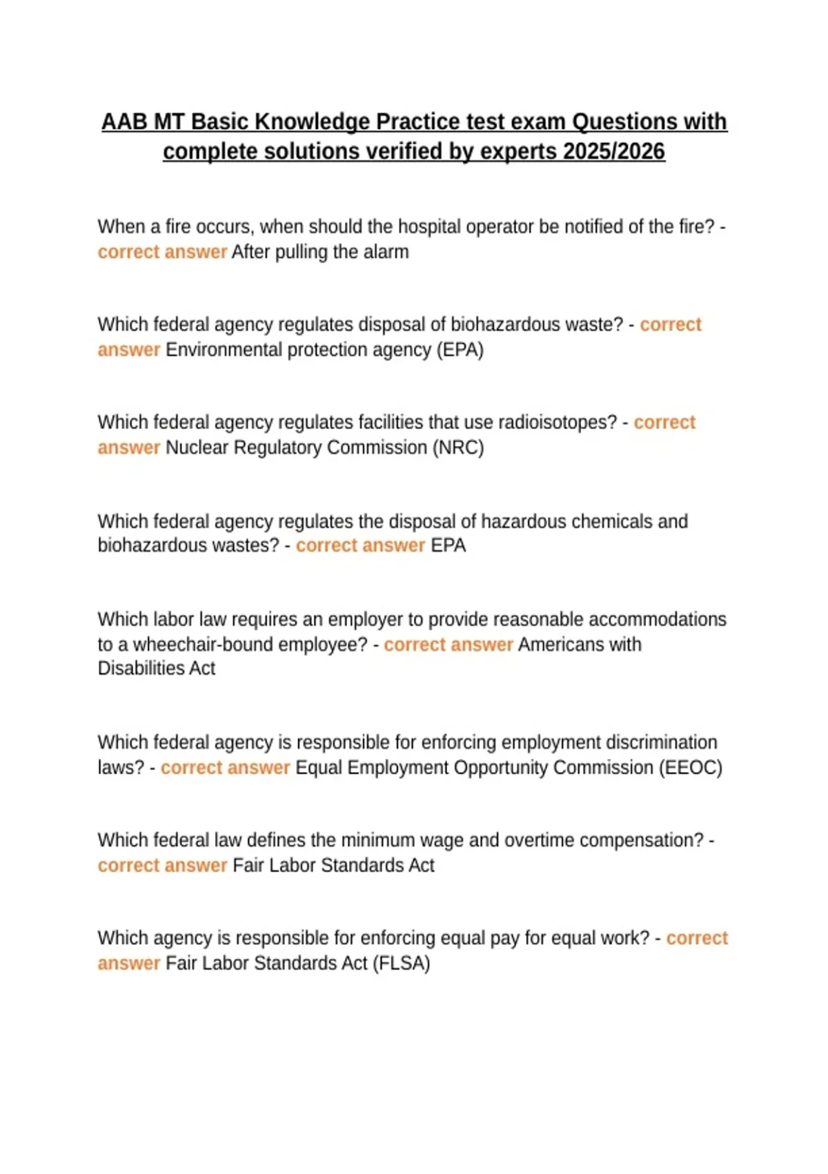 laws? - correct answer Equal Employment Opportunity Commission (EEOC)