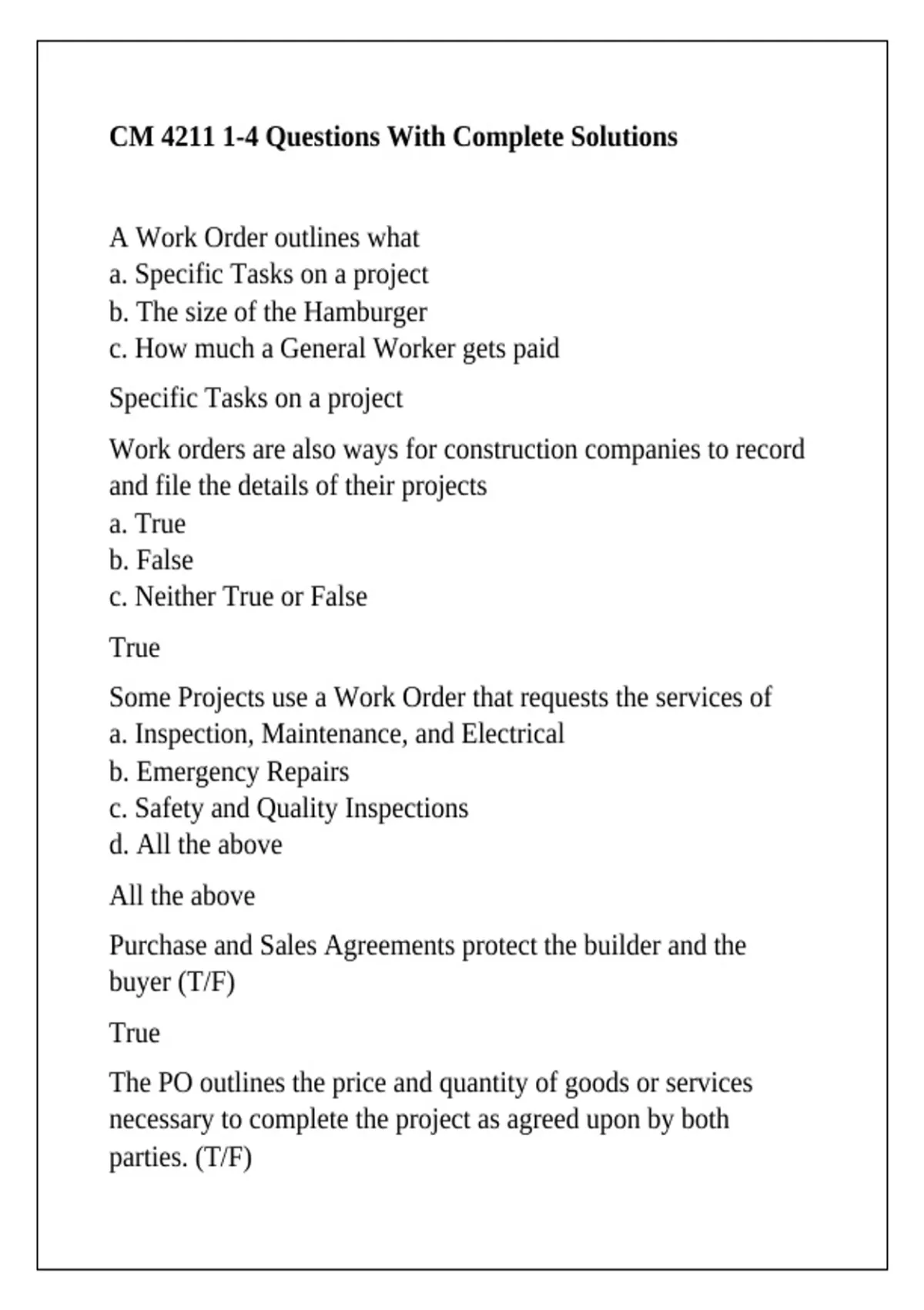 A Work Order outlines what