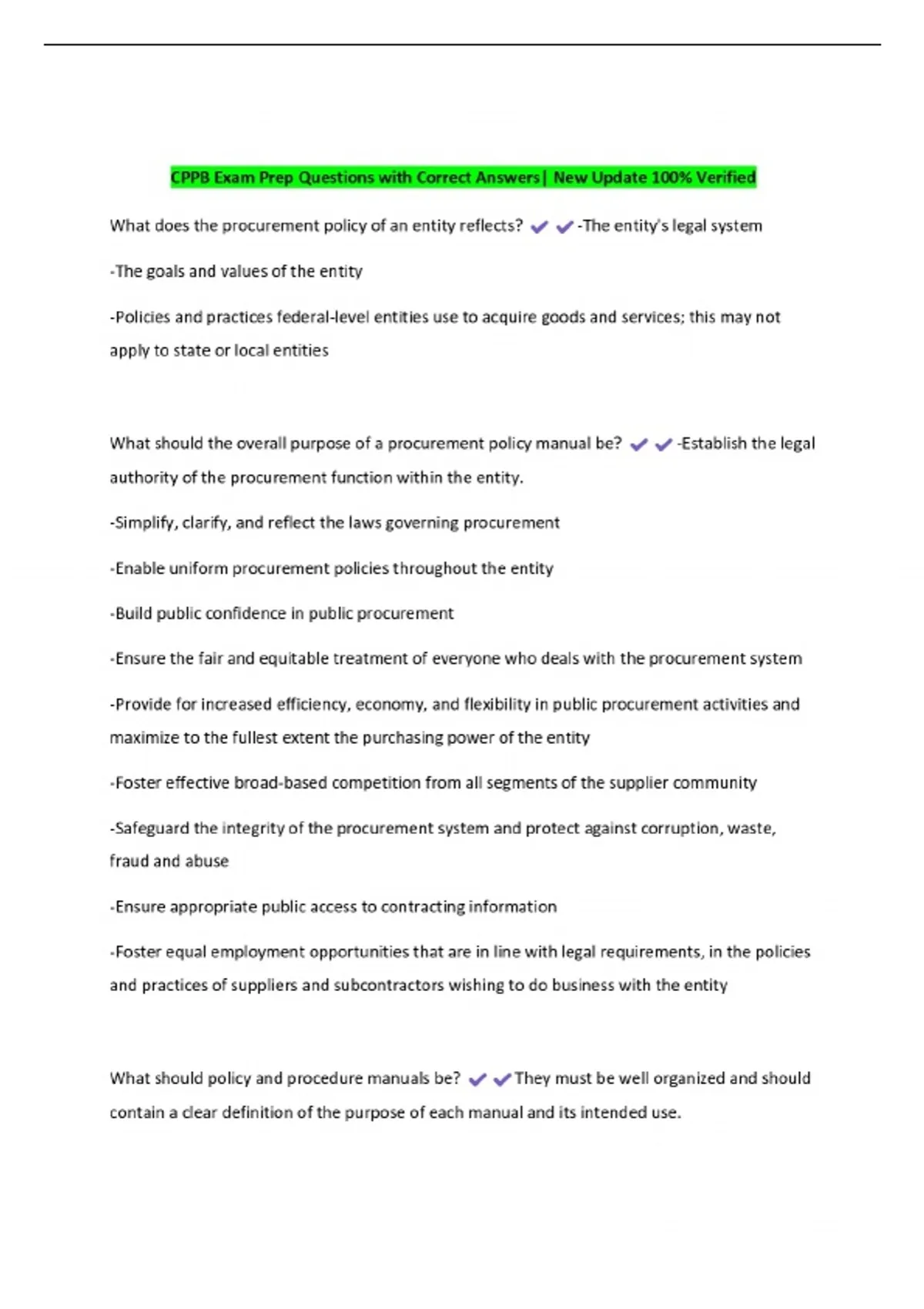 CPPB Exam Prep Questions with Correct Answers| New Update
