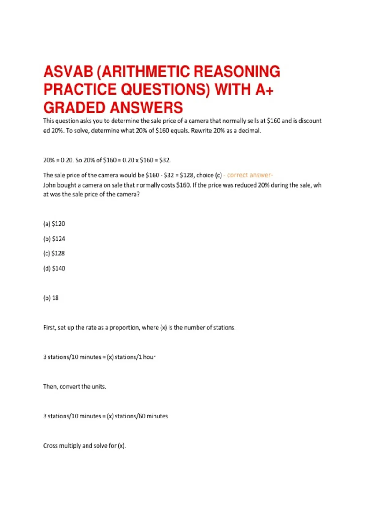 The sale price of the camera would be $160 - $32 = $128, choice (c) - correct answer-