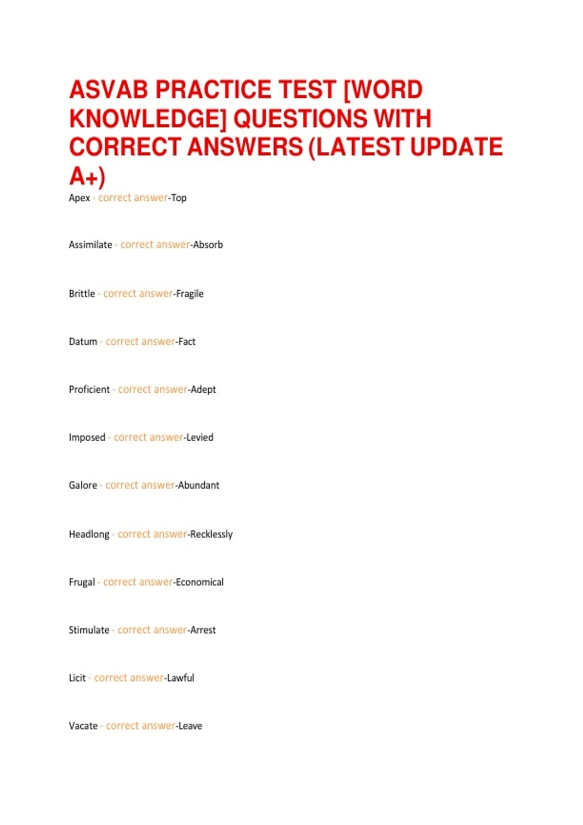 CORRECT ANSWERS (LATEST UPDATE