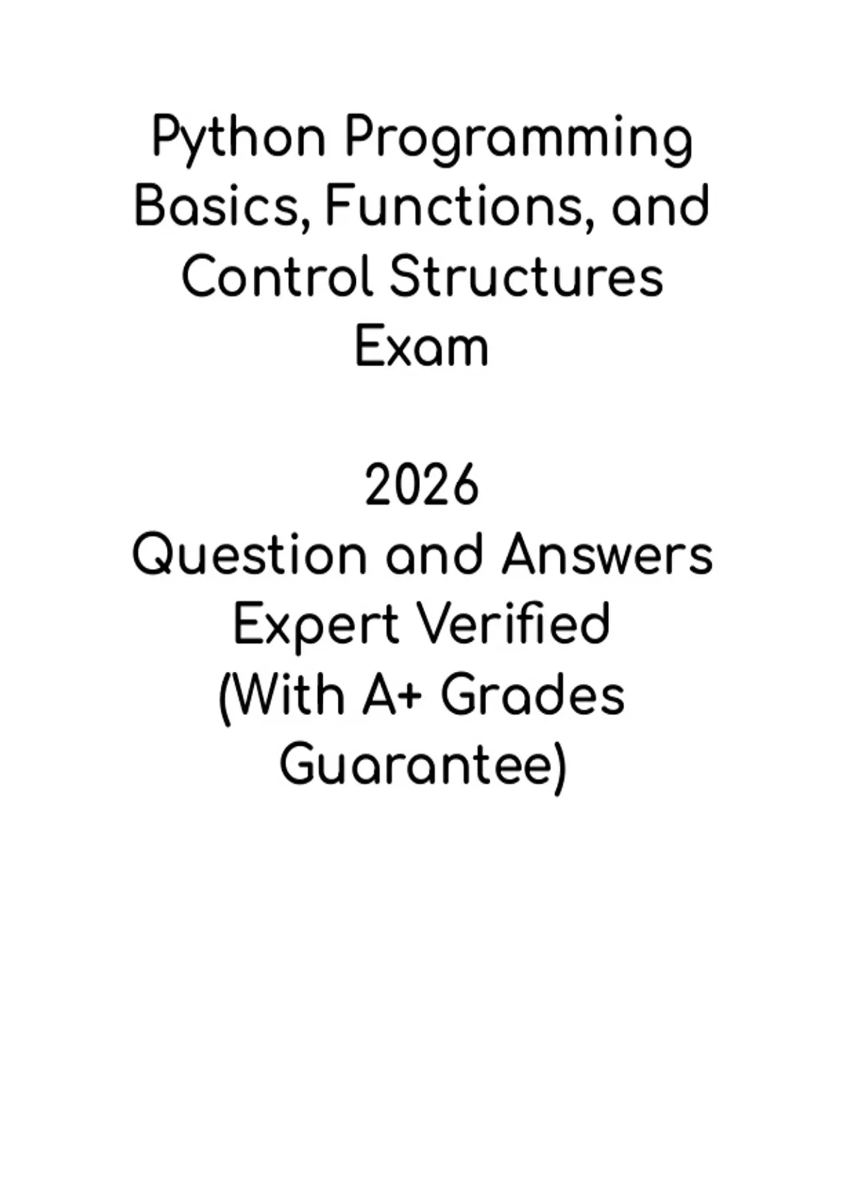 This Python Programming Basics, Functions, and Control Structures Study Guide is designed for students learning foundational programming concepts in Python. It covers core topics including variables, data types, functions, loops, conditionals, logical operators, and problem-solving techniques. Structured with clear explanations and practice exercises, this guide reinforces understanding of essential coding principles and builds confidence in writing and debugging Python programs. Ideal for beginners, computer science students, and exam preparation, this resource provides focused review and practical application skills for mastering Python in 2026.