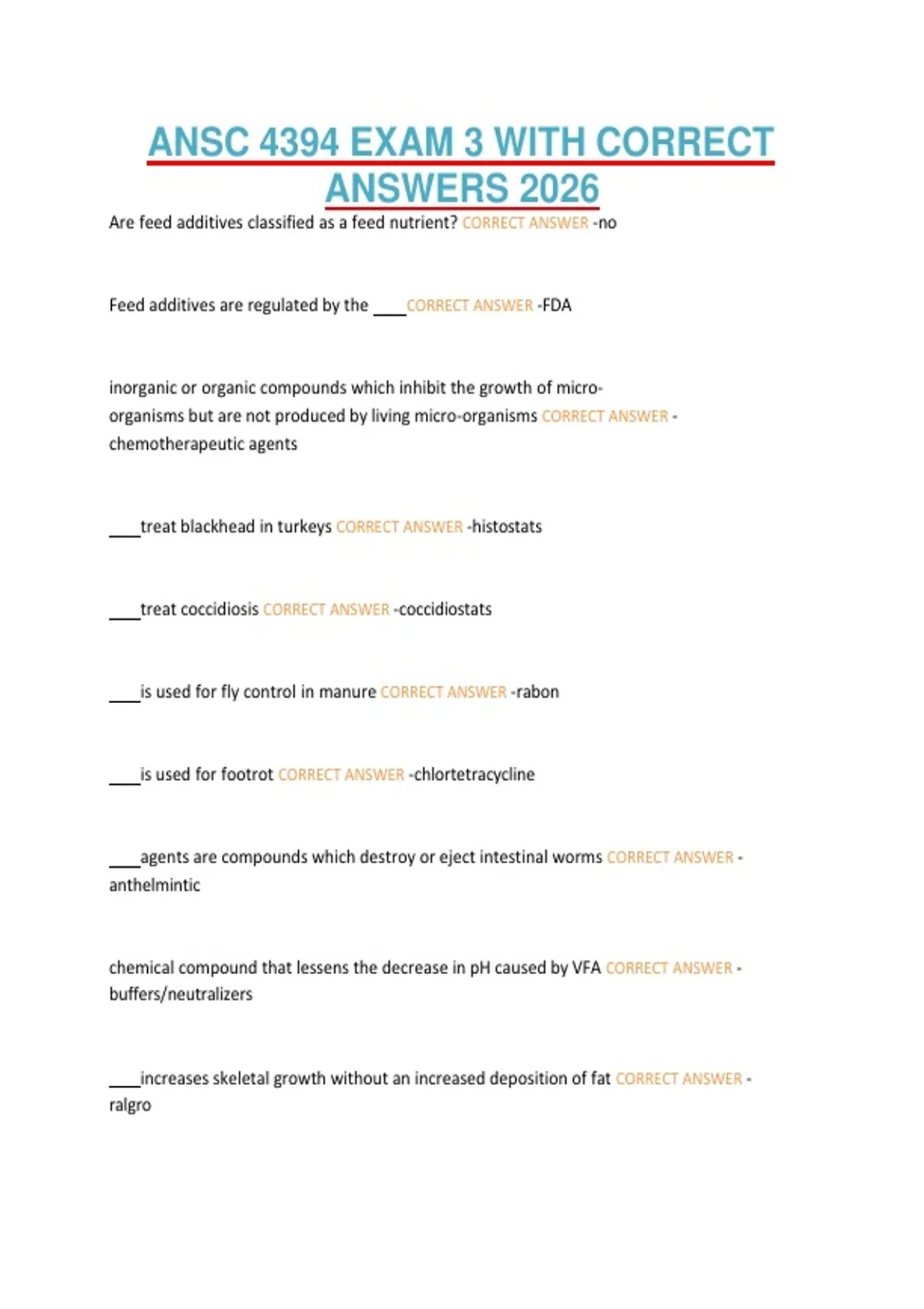 treat coccidiosis CORRECT ANSWER -coccidiostats