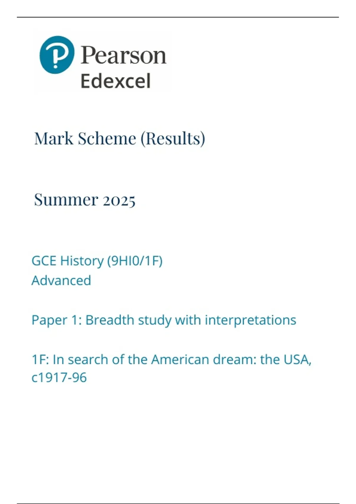 2025 A-LEVEL PEARSON EDEXCEL ADVANCED PAPER 1 OPTION 1F MARK SCHEME