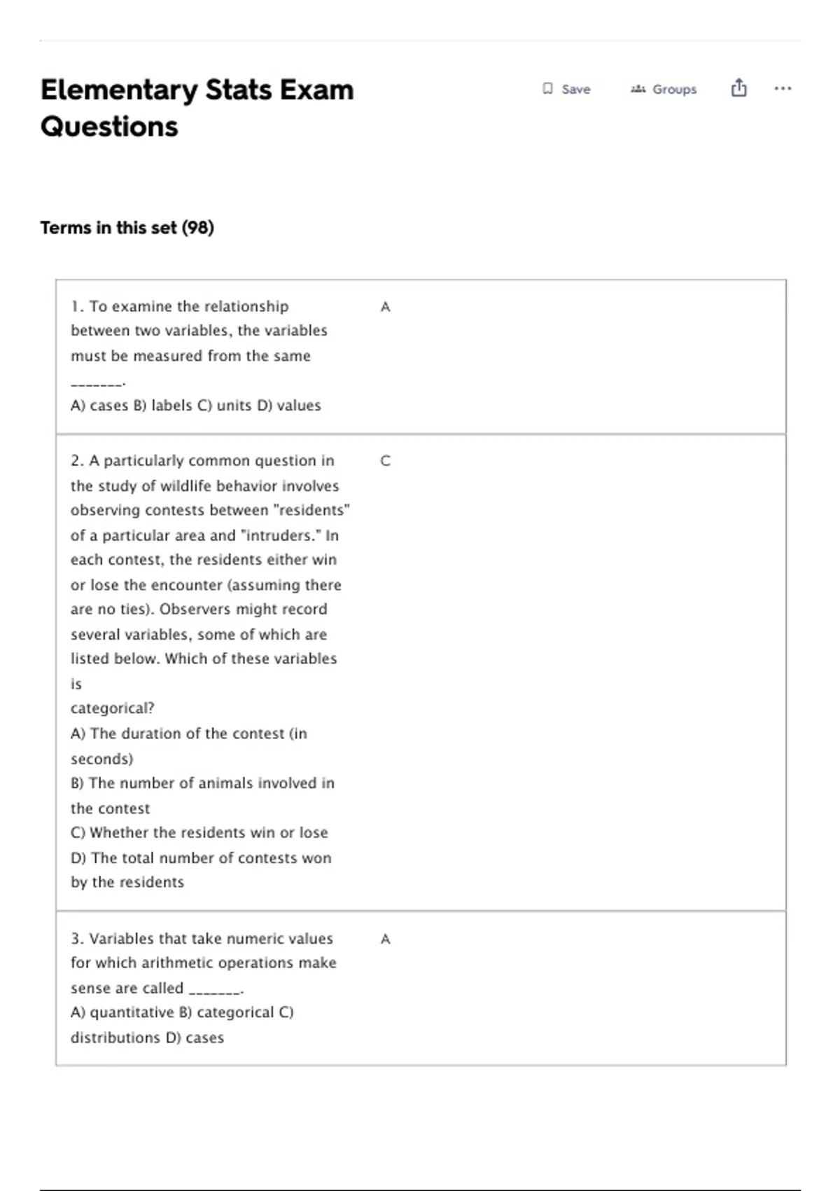 Elementary Stats Exam Save Groups