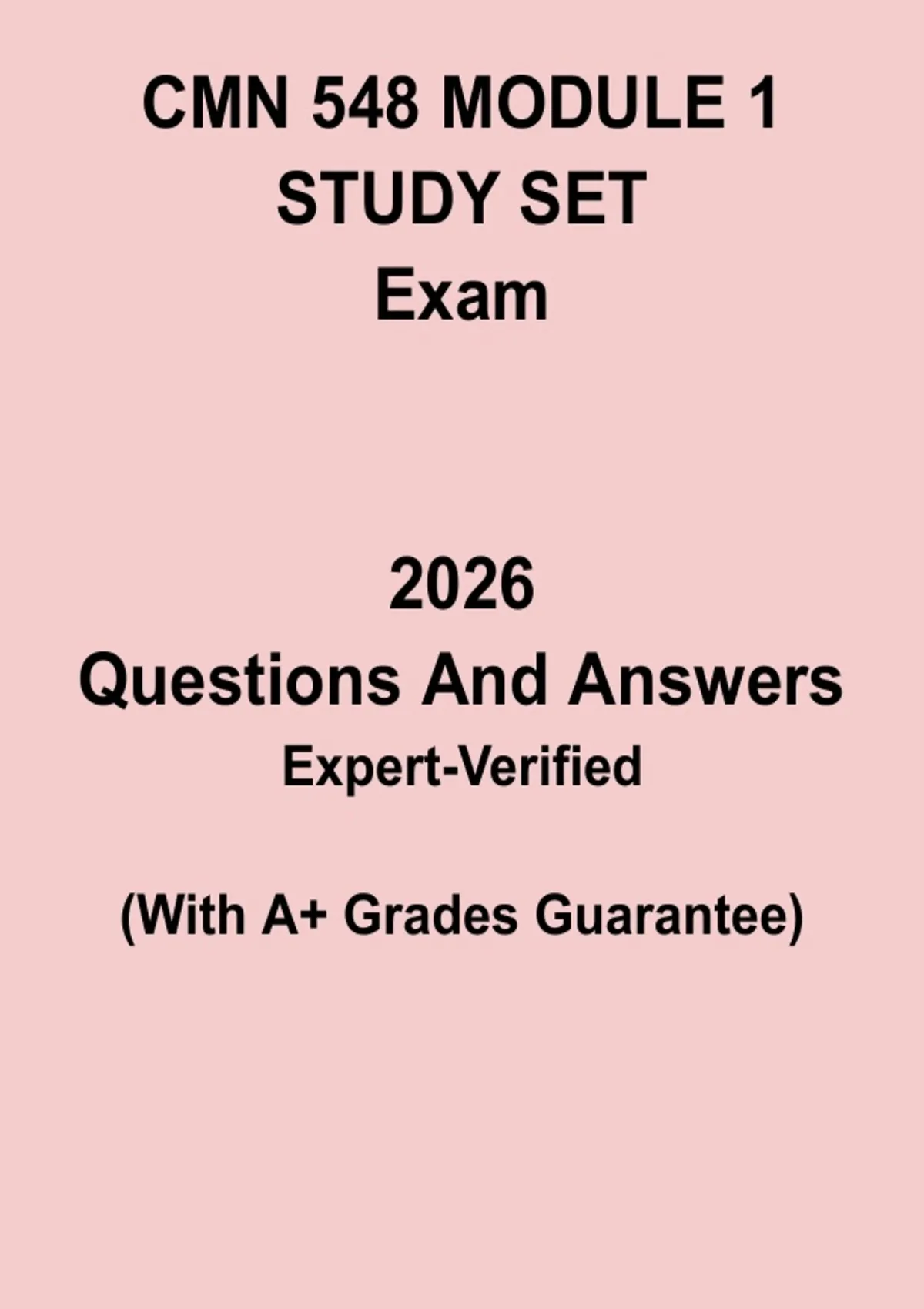 This CMN 548 Module 1 Study Set provides a comprehensive review of key concepts, lecture notes, and practice material for students enrolled in CMN 548 Communication Studies. The document includes organized summaries, definitions, and exam-focused questions to help reinforce understanding of module topics. Ideal for exam preparation and course revision, this study set enables students to efficiently review essential material, retain critical knowledge, and confidently approach quizzes or module exams.