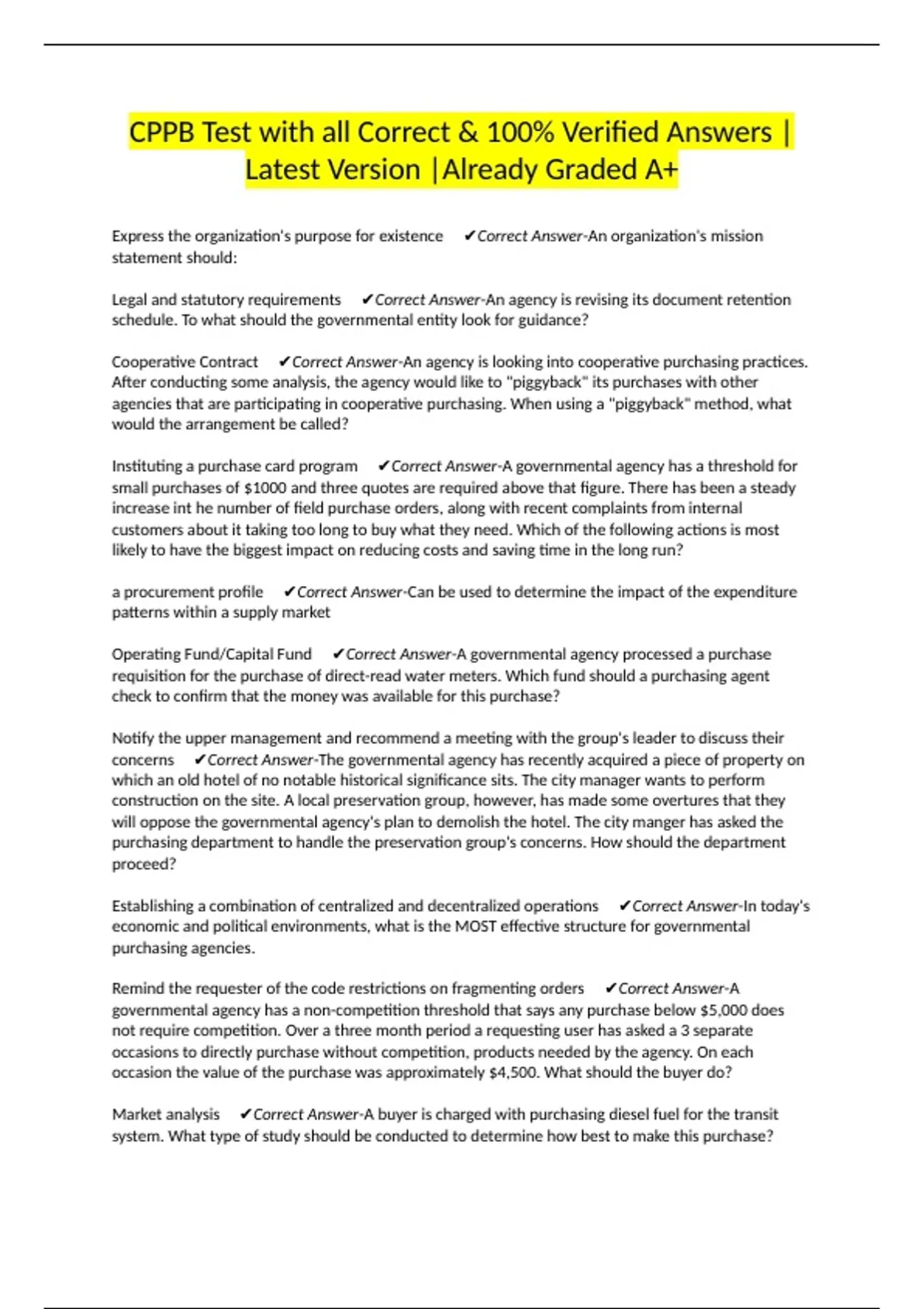 CPPB Test with all Correct & 100% Verified Answers |Latest Version |Already Graded A+