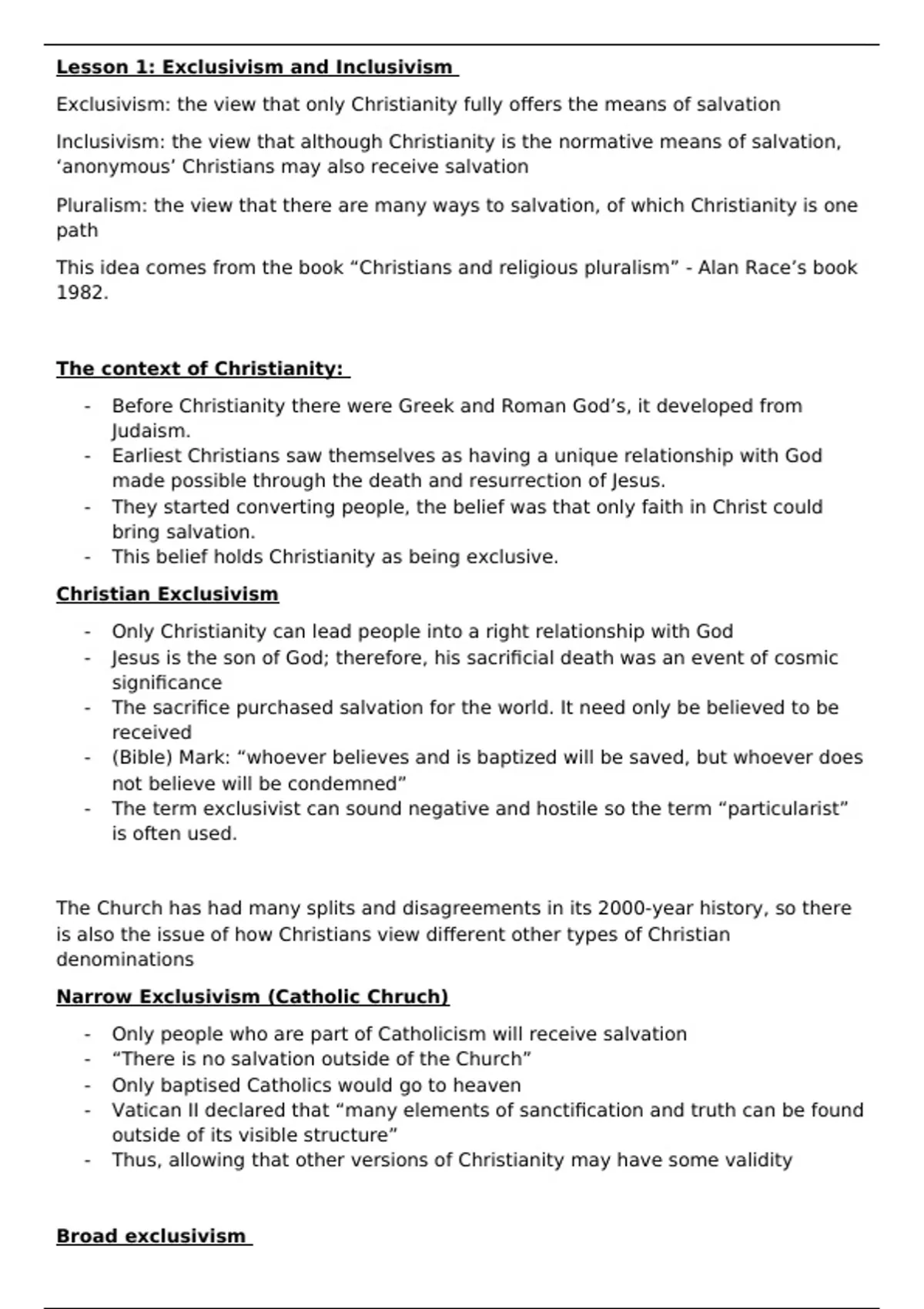 Lesson 1: Exclusivism and Inclusivism