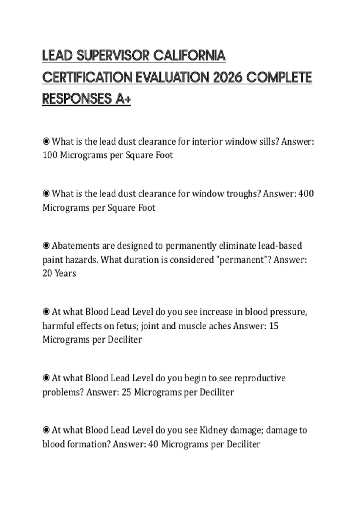 ◉ What is the lead dust clearance for interior window sills? Answer: