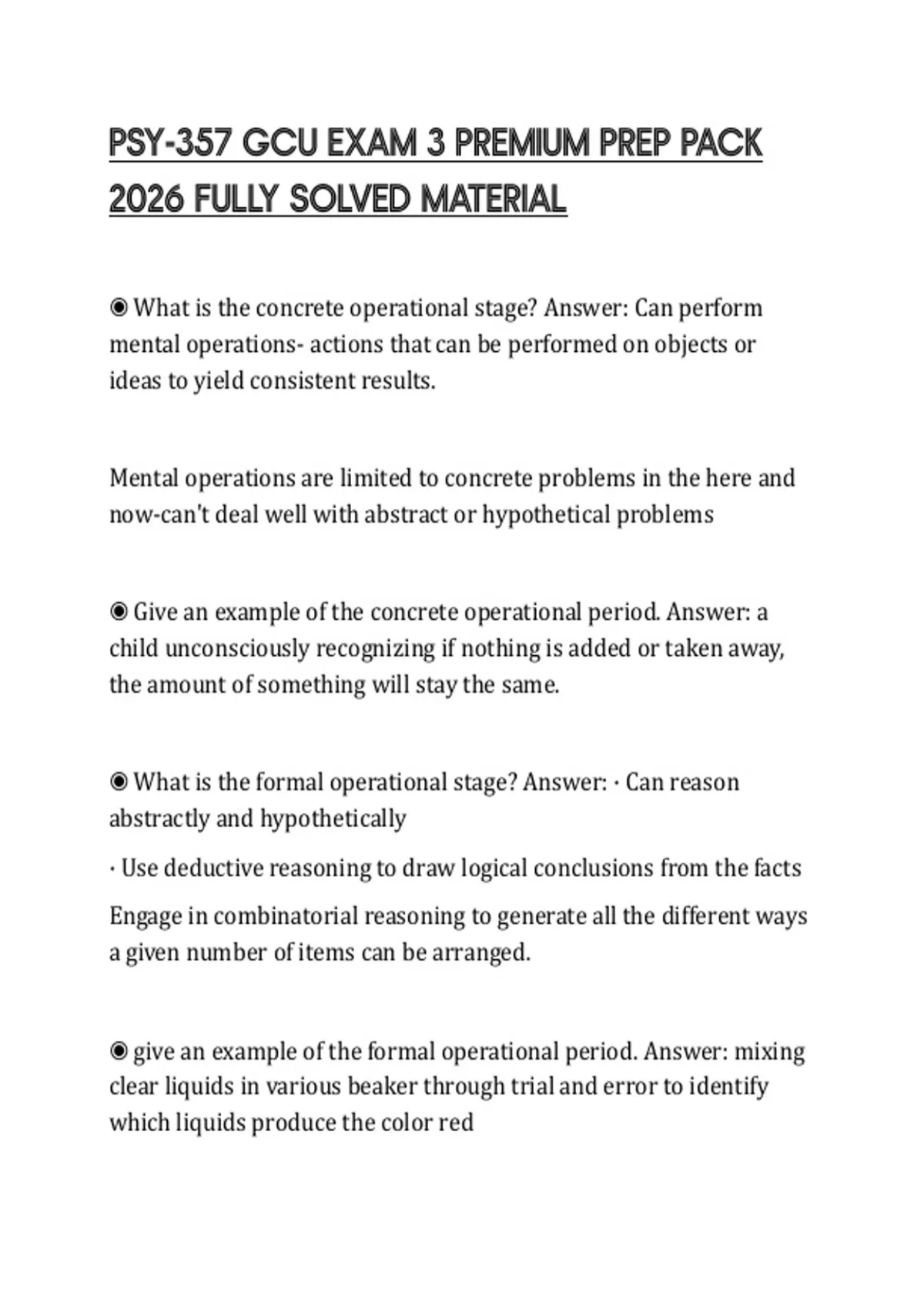 PSY-357 GCU EXAM 3 PREMIUM PREP PACK 2026 FULLY SOLVED MATERIAL