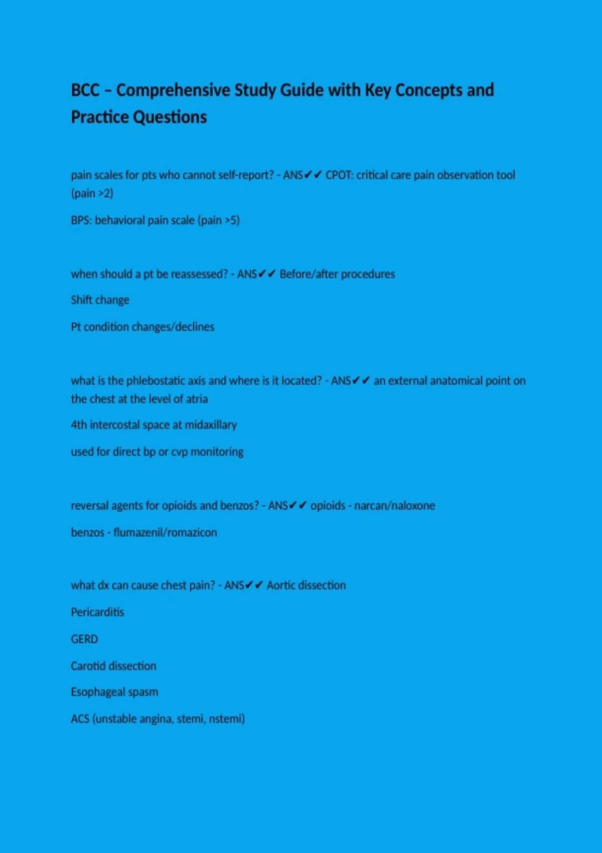pain scales for pts who cannot self-report? - ANS✔✔ CPOT: critical care pain observation tool