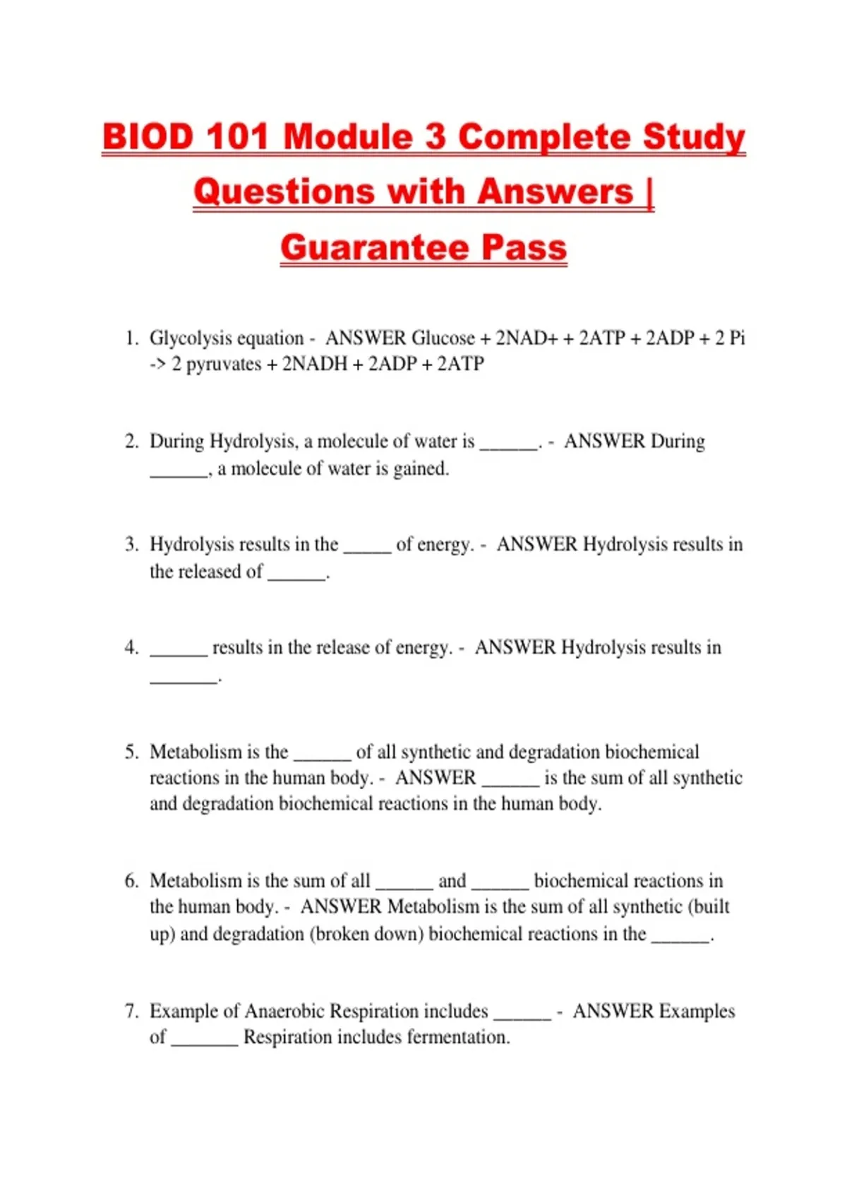 7. Example of Anaerobic Respiration includes ______ - ANSWER Examples