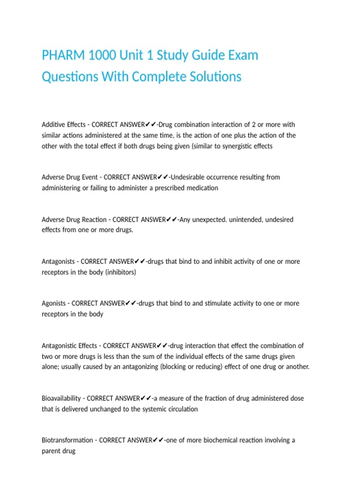 PHARM 1000 Unit 1 Study Guide Exam Questions With Complete Solutions