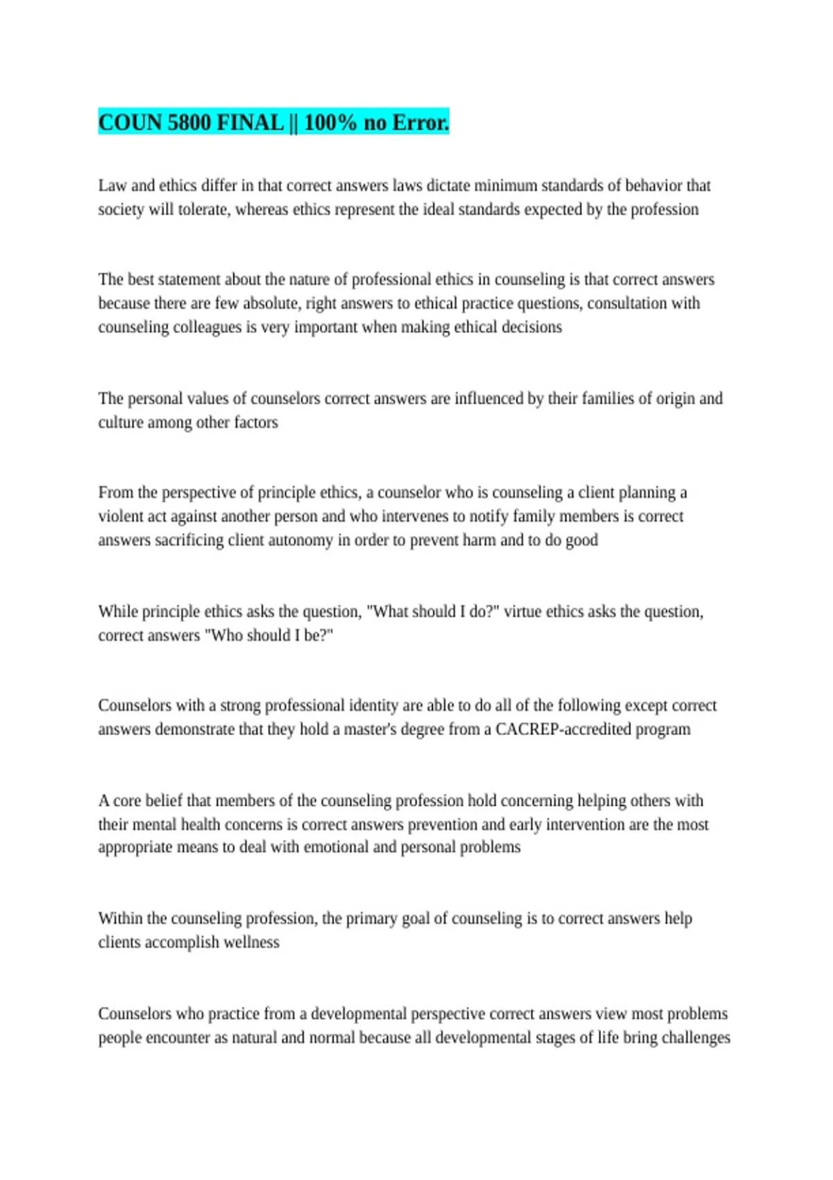 The best statement about the nature of professional ethics in counseling is that correct answers