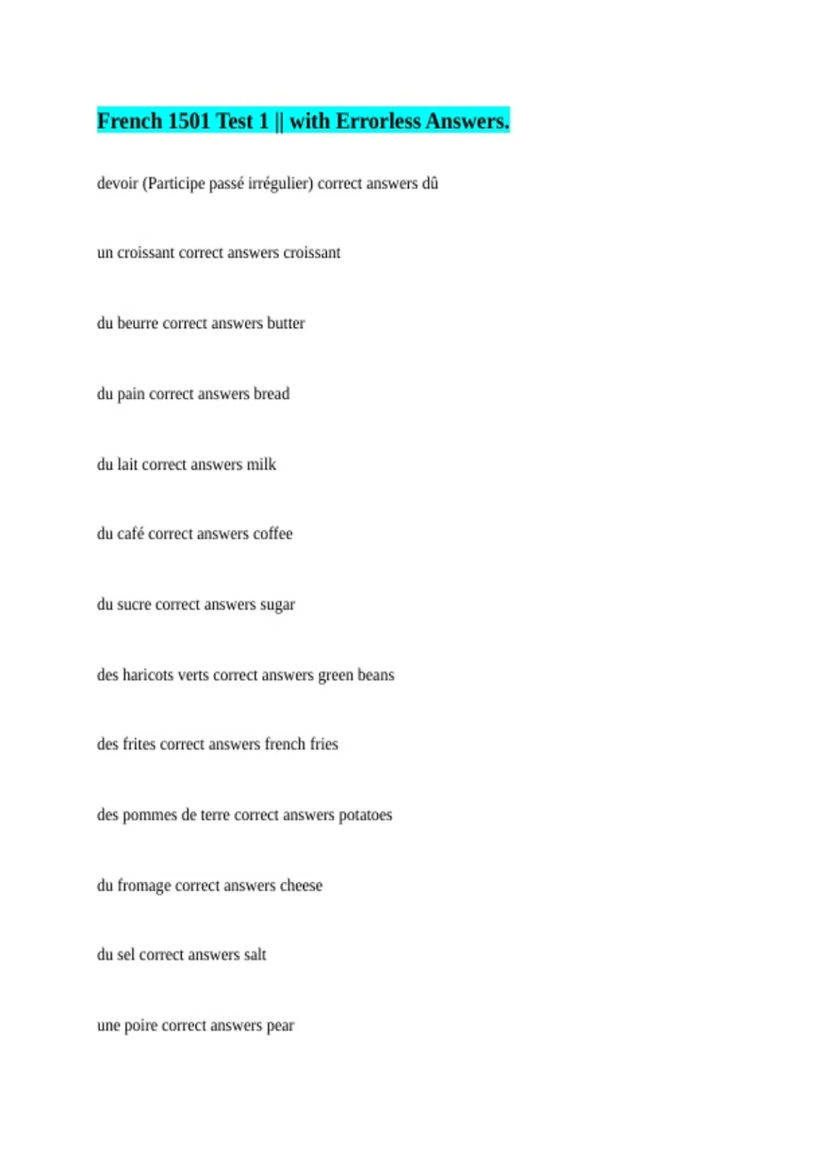 des haricots verts correct answers green beans