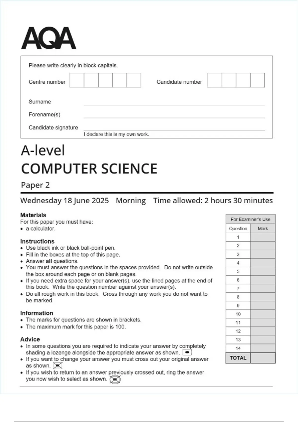 AQA A-level COMPUTER SCIENCE Paper 2 JUNE 2025 QUESTION PAPER