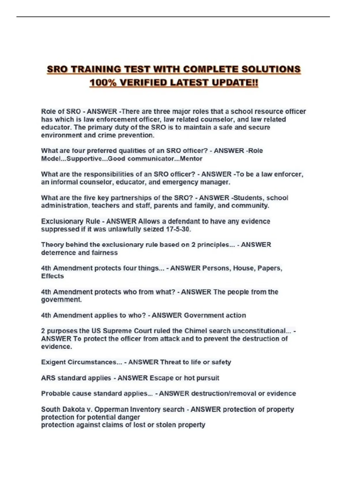 SRO TRAINING TEST WITH COMPLETE SOLUTIONS 100% VERIFIED LATEST UPDATE!!...