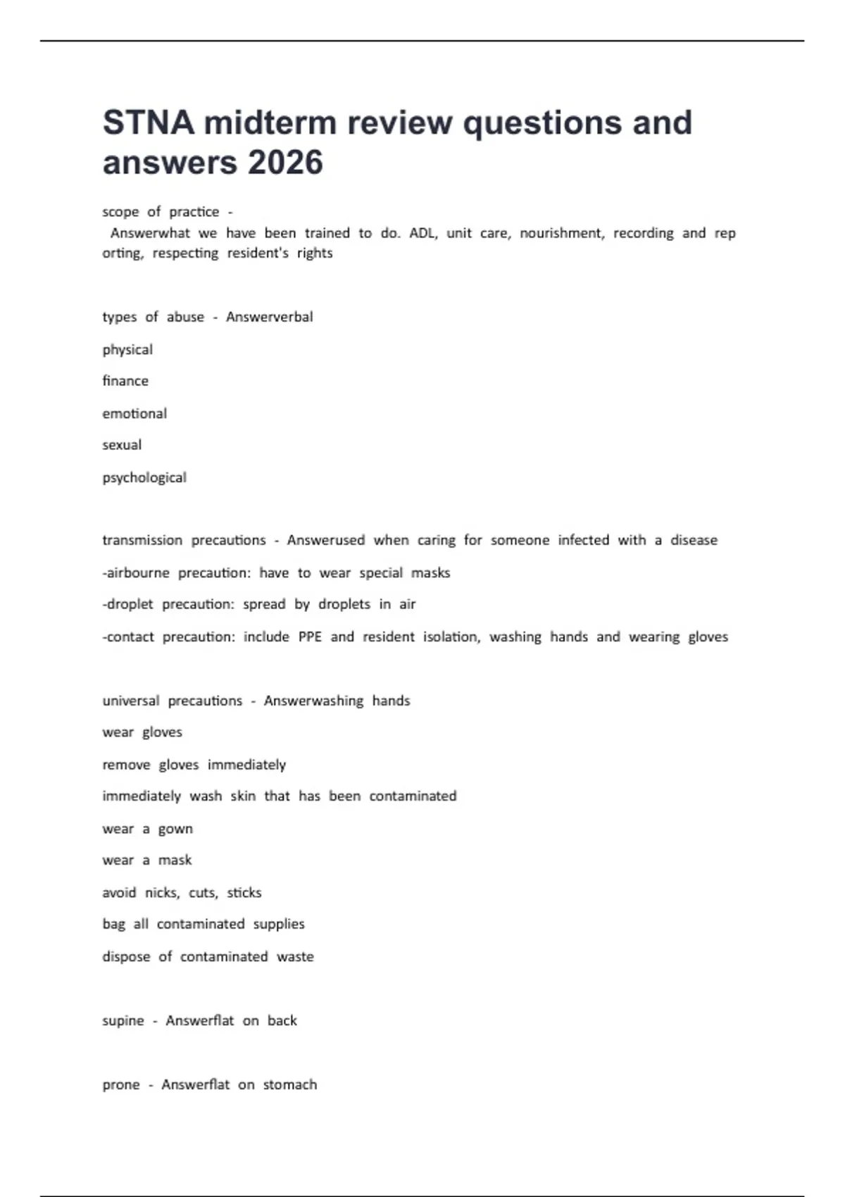 STNA midterm review questions and