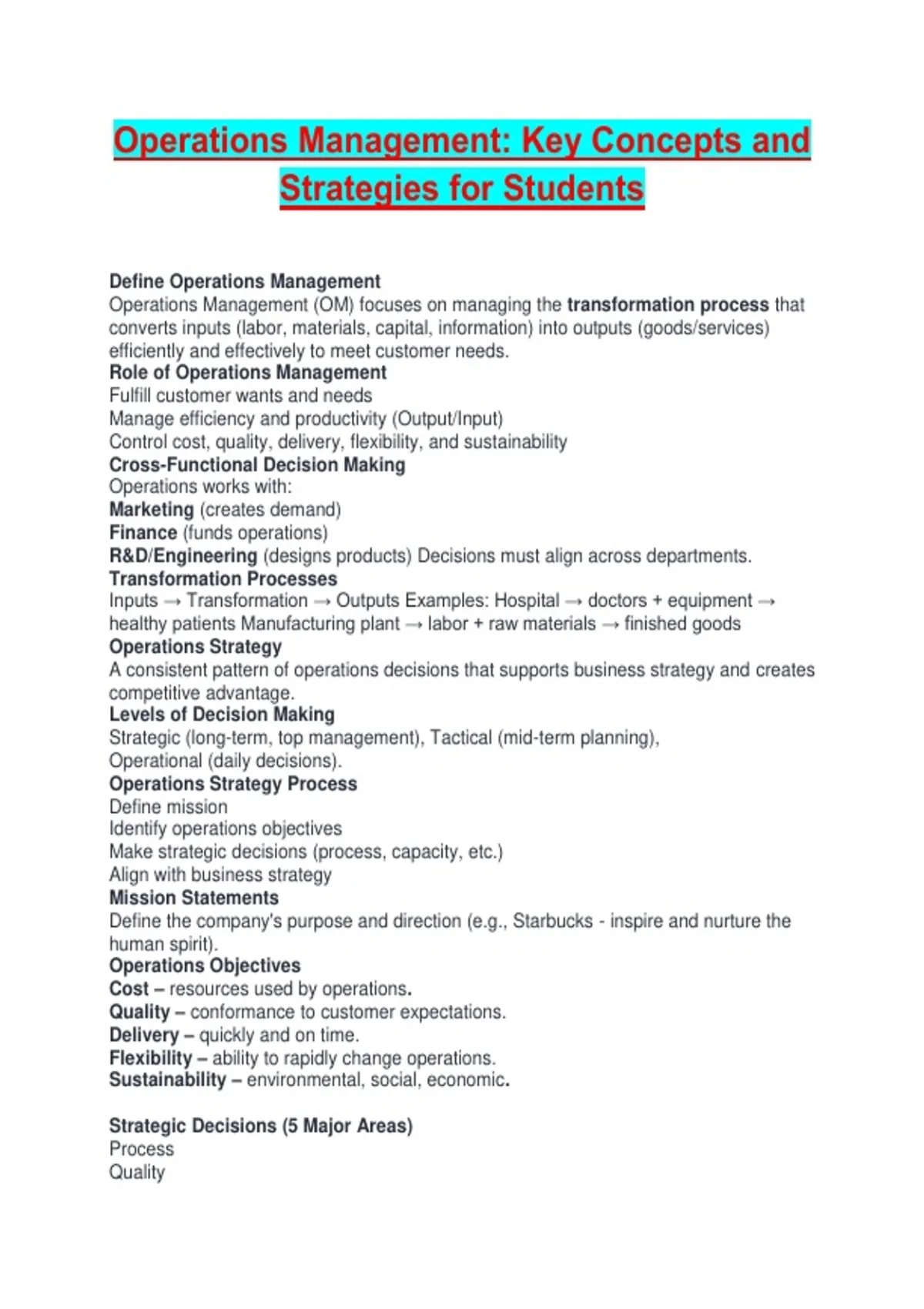 Strategic Decisions (5 Major Areas)