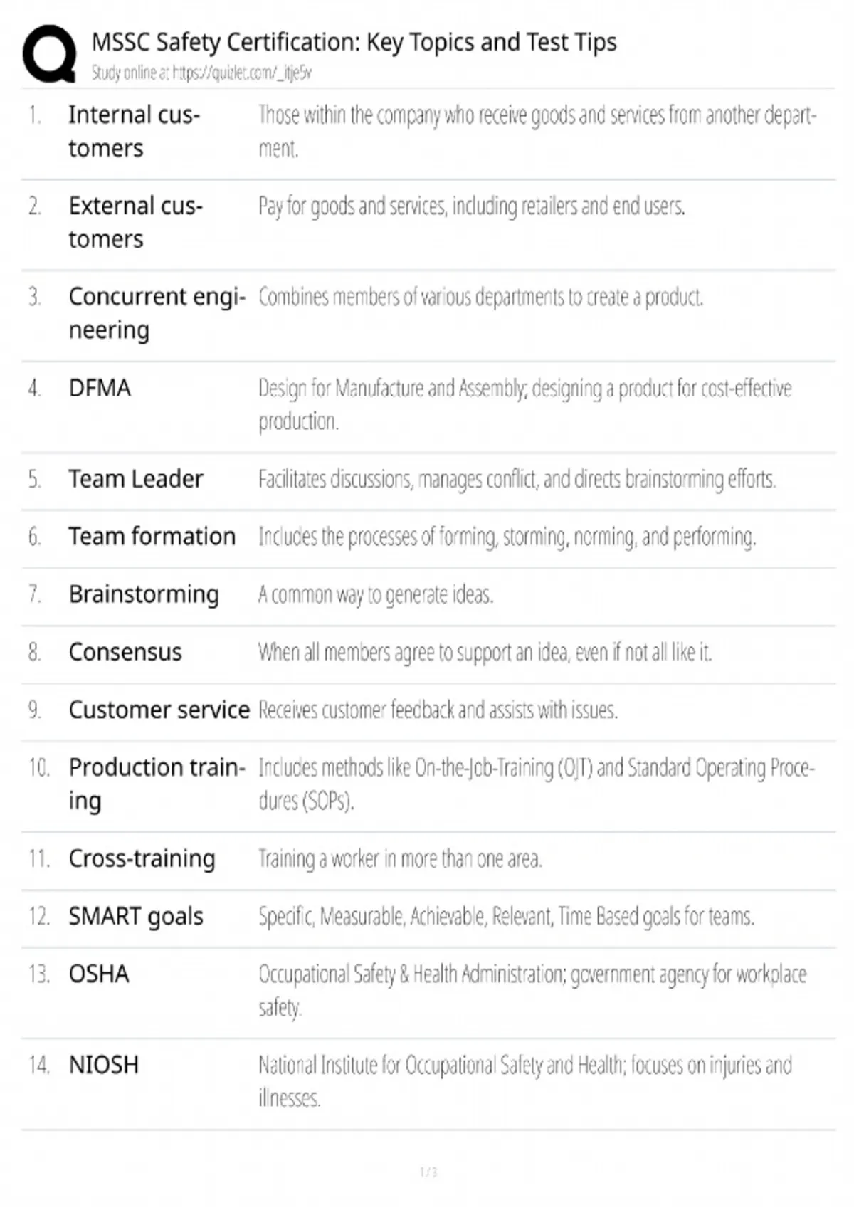 MSSC Safety Certification / MFG 101 Study Guide / 2025 Update / Score 100%