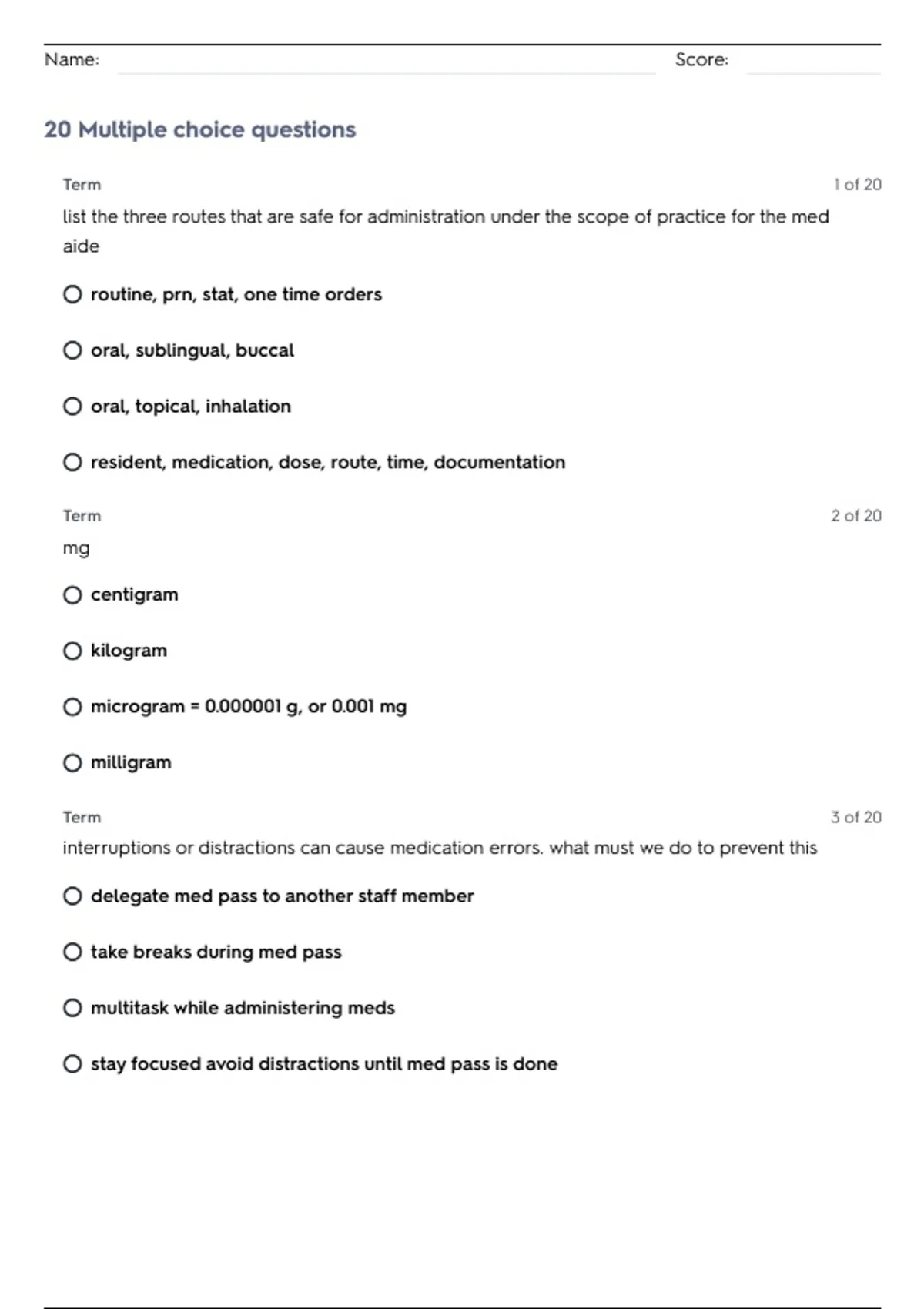 Prepare for the Medication Aide State Certification Exam with this study guide. Review medication administration procedures, dosage calculations, safety protocols, documentation, and practice questions designed to help candidates succeed on the exam.