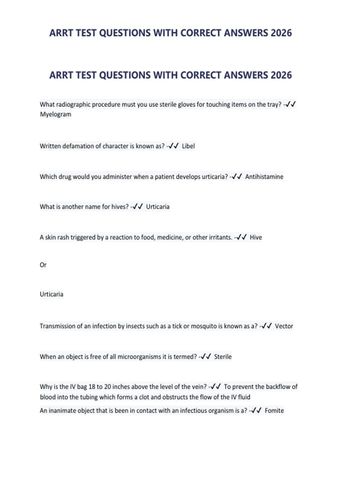 ARRT TEST QUESTIONS WITH CORRECT ANSWERS 2026/ARRT TEST QUESTIONS WITH CORRECT ANSWERS 2026/ARRT TEST QUESTIONS WITH CORRECT ANSWERS 2026
