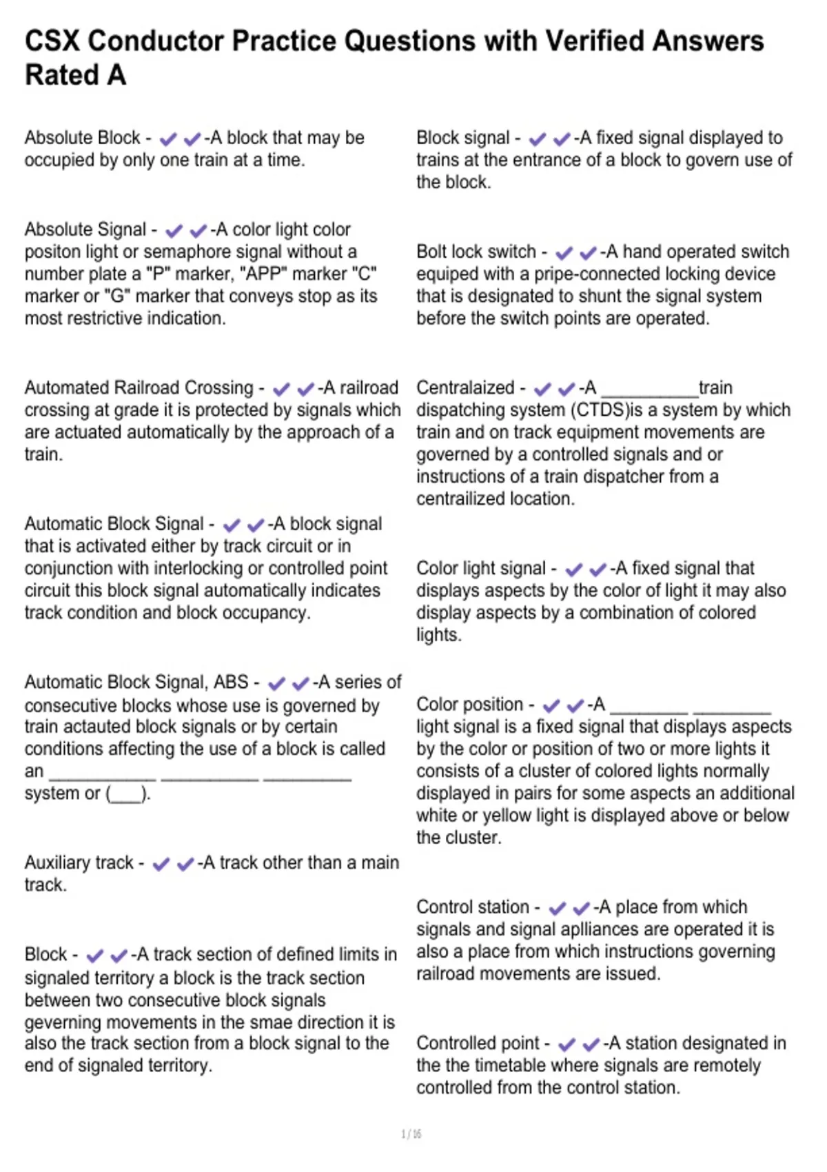 , CSX Conductor Practice Questions with Verified Answers