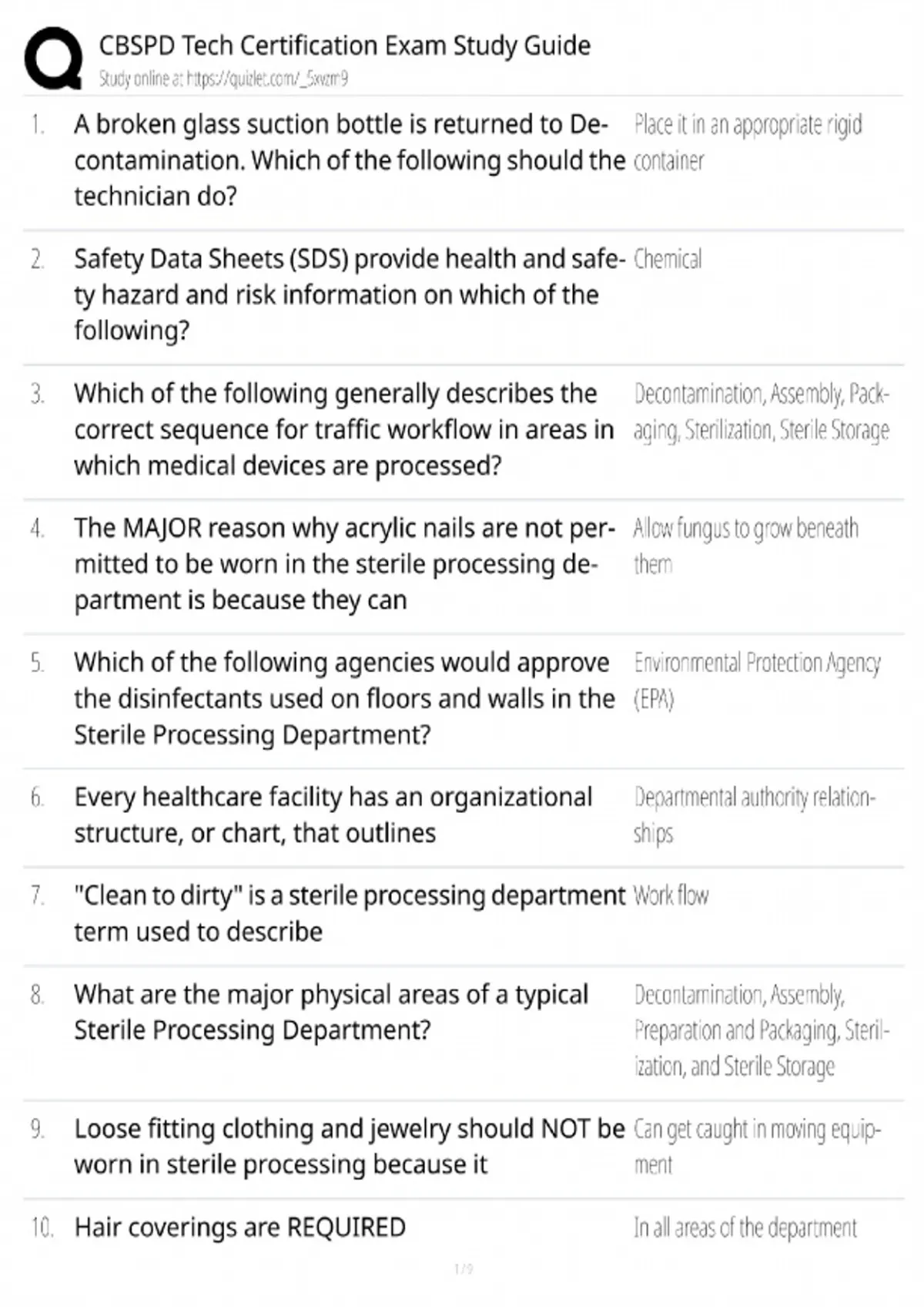 CBSPD Tech Certification Exam / ST 220 Study Guide / SPD Technician Prep / Score 100%