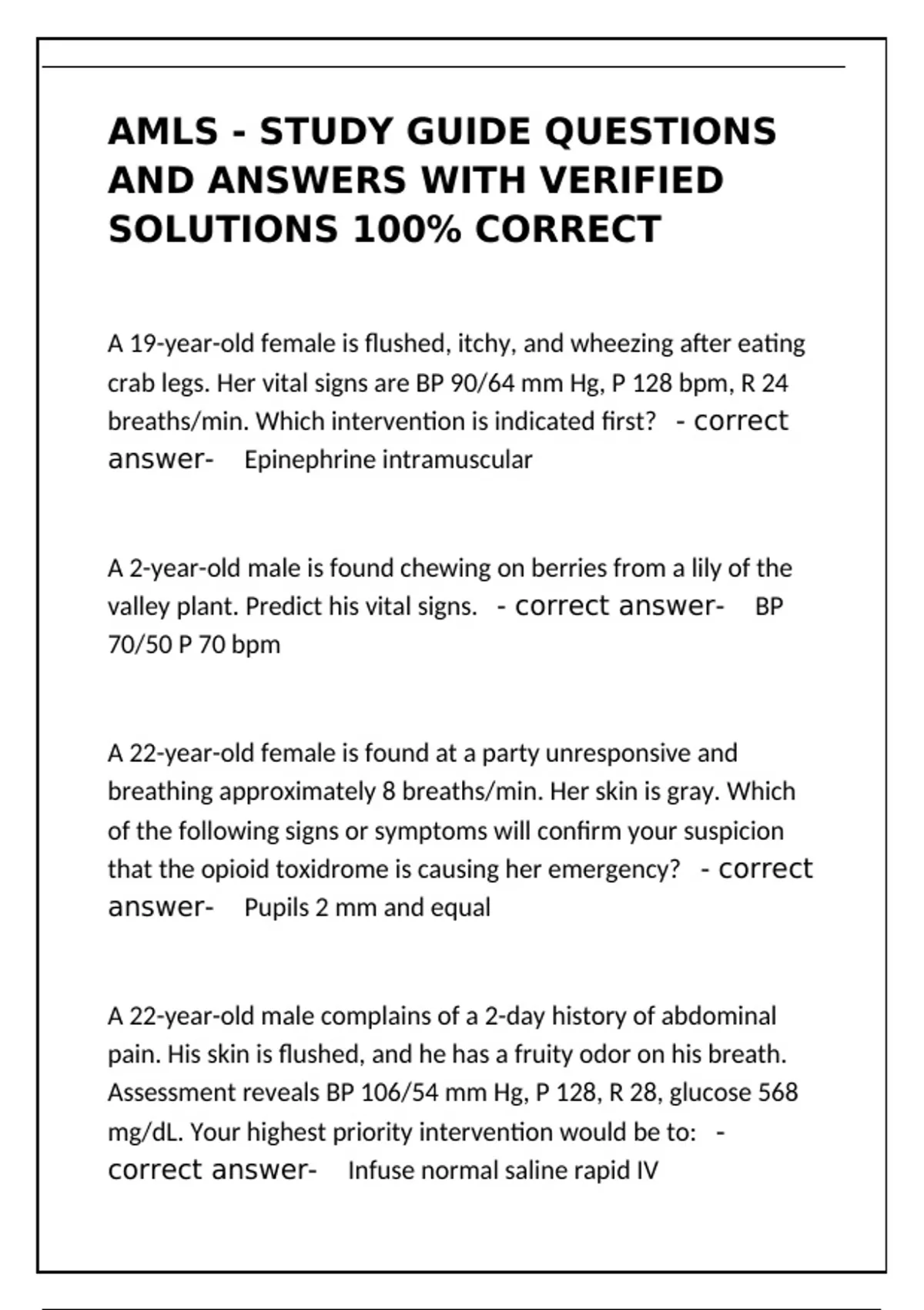 Master the AMLS course with this comprehensive study guide. Features detailed questions and verified answers on shock, respiratory failure, toxicology, and more.