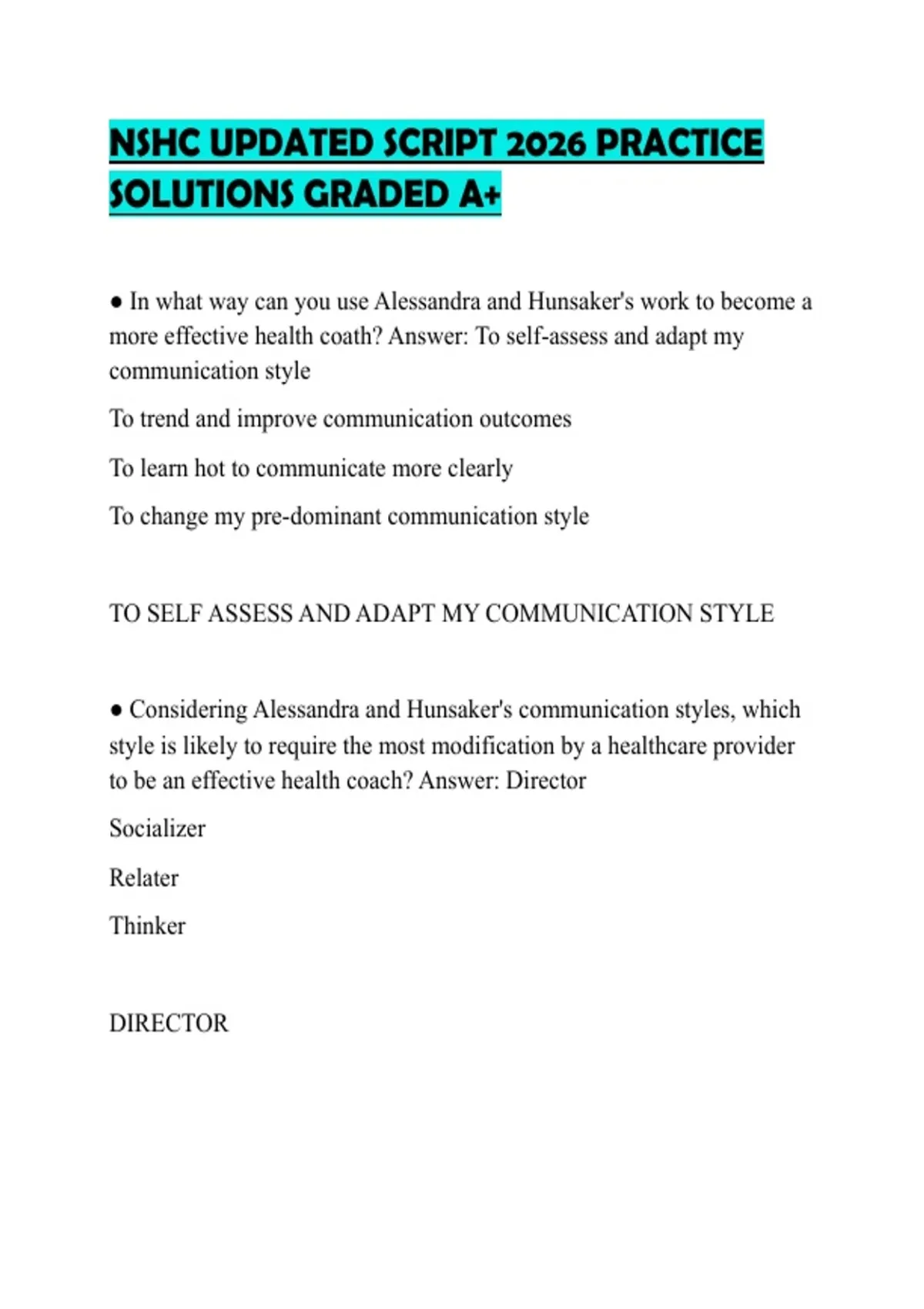 NSHC UPDATED SCRIPT 2026 PRACTICE SOLUTIONS GRADED A+