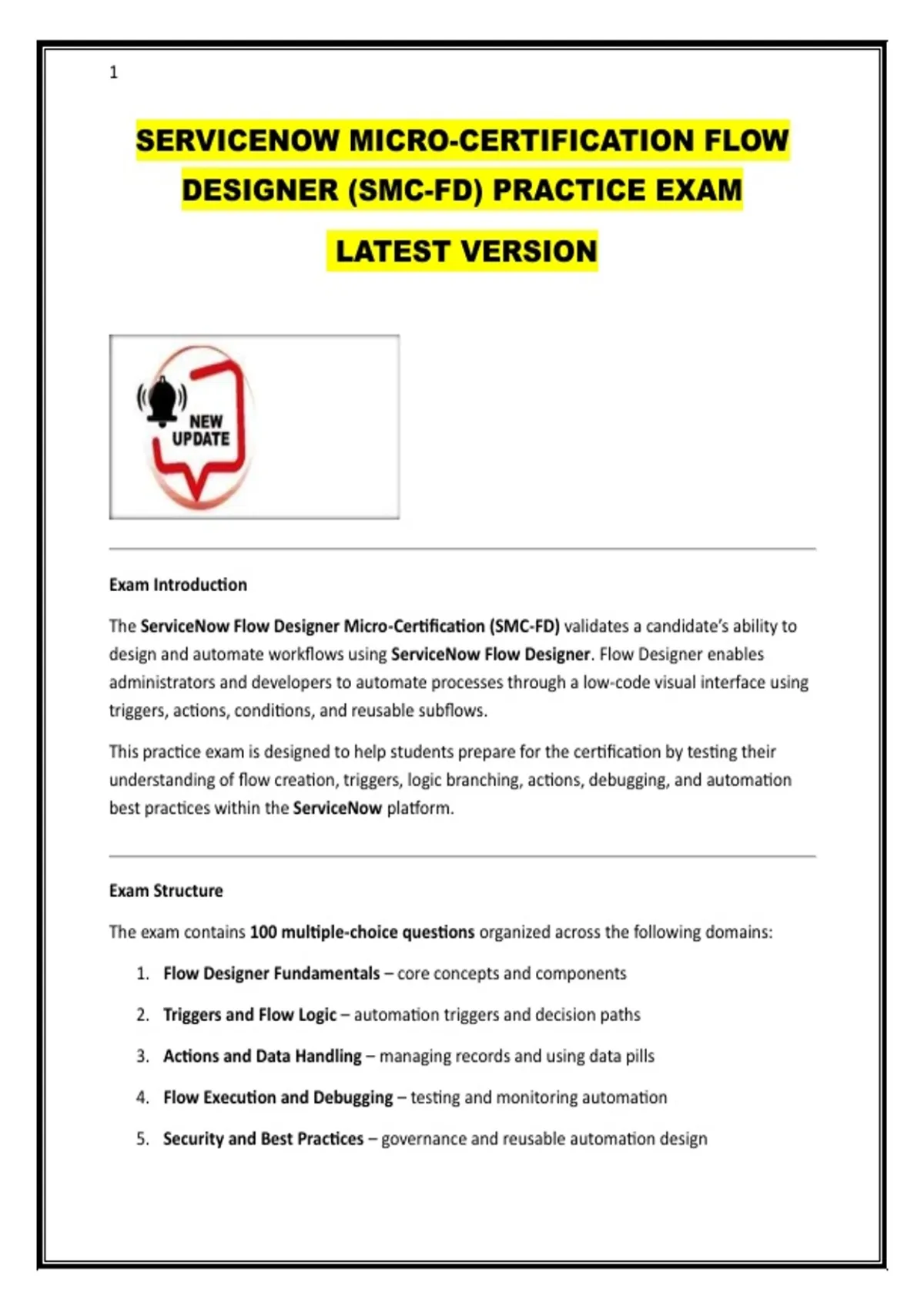 The ServiceNow Flow Designer Micro-Certification (SMC-FD) validates a candidate’s ability to