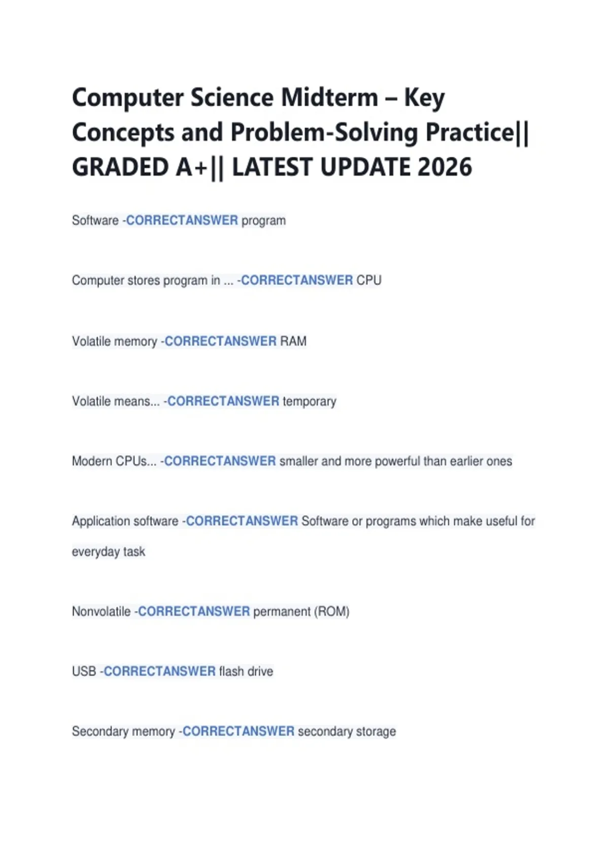 Computer Science Midterm – Key Concepts and Problem-Solving Practice|| GRADED A+|| LATEST UPDATE 2026