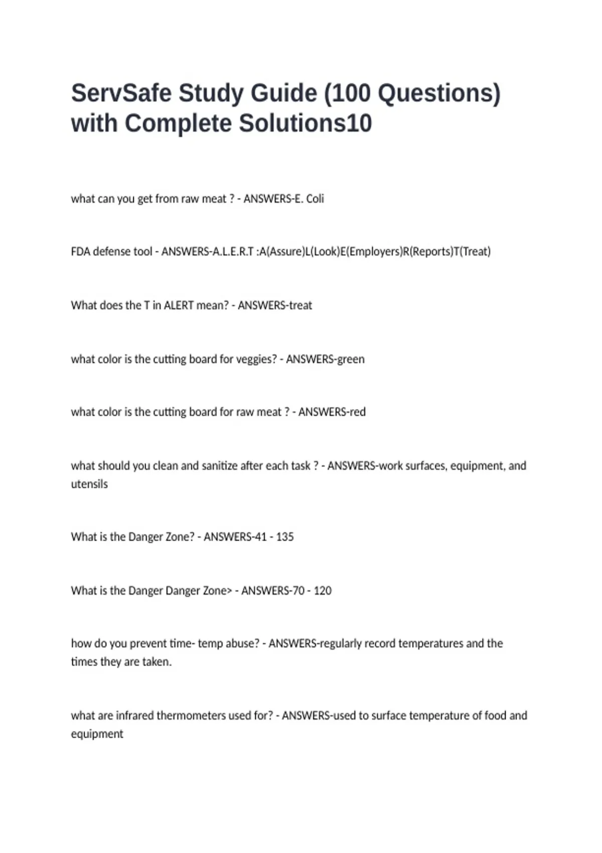 ServSafe Study Guide (100 Questions) with Complete Solutions