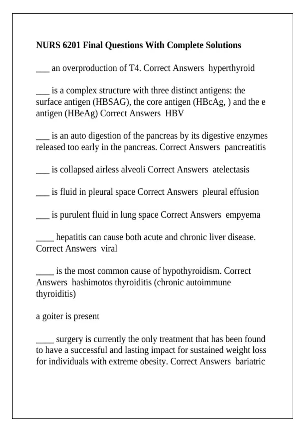 NURS 6201 Final Questions With Complete Solutions